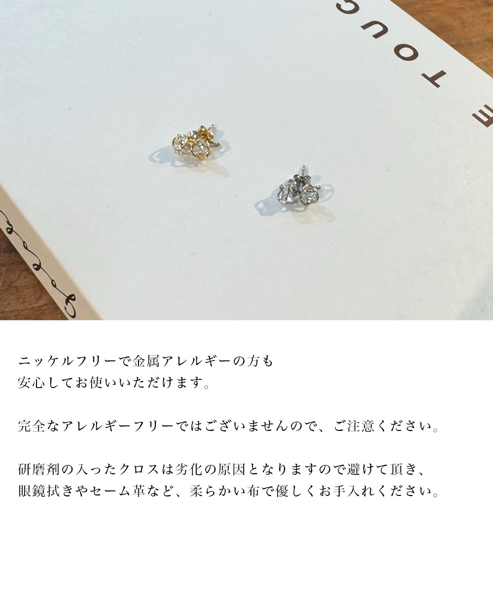 | 素材 | ニッケルフリー,真鍮,キュービックジルコニア |