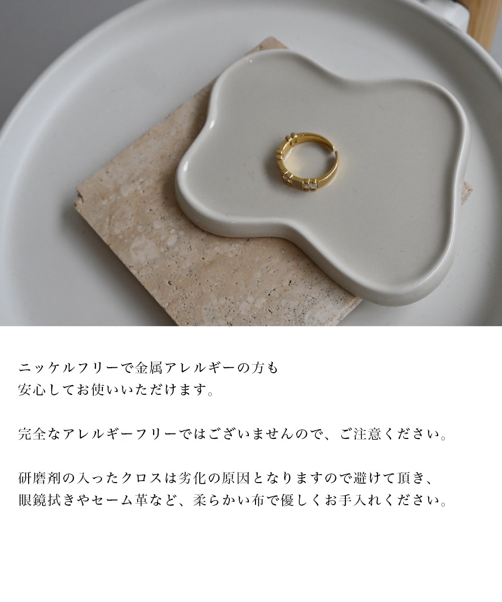 ※完全なアレルギーフリーではございませんので、ご注意ください。 ※研磨剤の入ったクロスは劣化の原因となりますので避けて頂き、眼鏡拭きやセーム革など、柔らかい布で優しくお手入れください。 ※パソコンモニターまたは撮影ライトや自然光での光の影響により、画像によって実際の商品の素材感や色の差を感じることがございます。 ※生産時期が異なる場合、多少の色味や仕様が変わる場合がございますのであらかじめご了承ください。 ※使用後や汚れた際は、柔らかく乾いた布で拭いて下さい。 ※すべての方に金属アレルギー反応が出来ないこと(アレルギーフリー)を保証するものではございません。 皮膚に異常を感じた場合は直ちにご使用を中止し、専門医にご相談ください。 ※メッキ加工を施している商品につきましては、汗や摩擦、化粧品と触れたり、着用したまま入浴することで、剥がれ落ちやすくなります。ご了承の上お買い求め下さい。 |