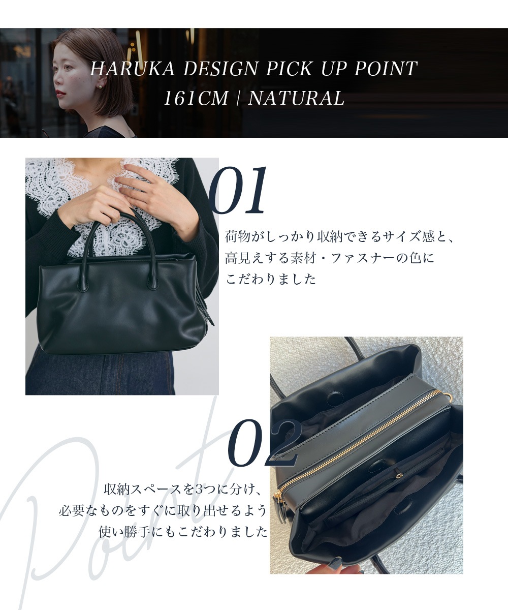 | サイズ | 高さ 約17cm/底横幅 約29.5cm/ファスナー 約27.5cm/奥行き 約13cm/ハンドル 約37cm/ショルダー 約105~127cm |