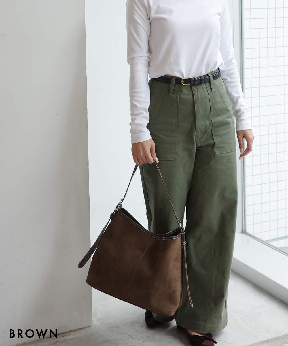 | 素材 | 表地:ポリエステル100% 裏地:ポリエステル100% 別布:合成皮革 |