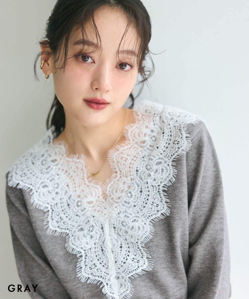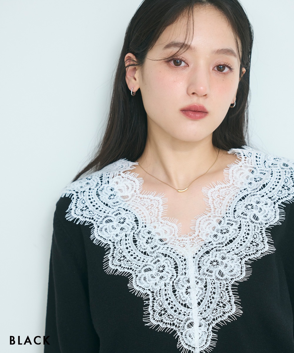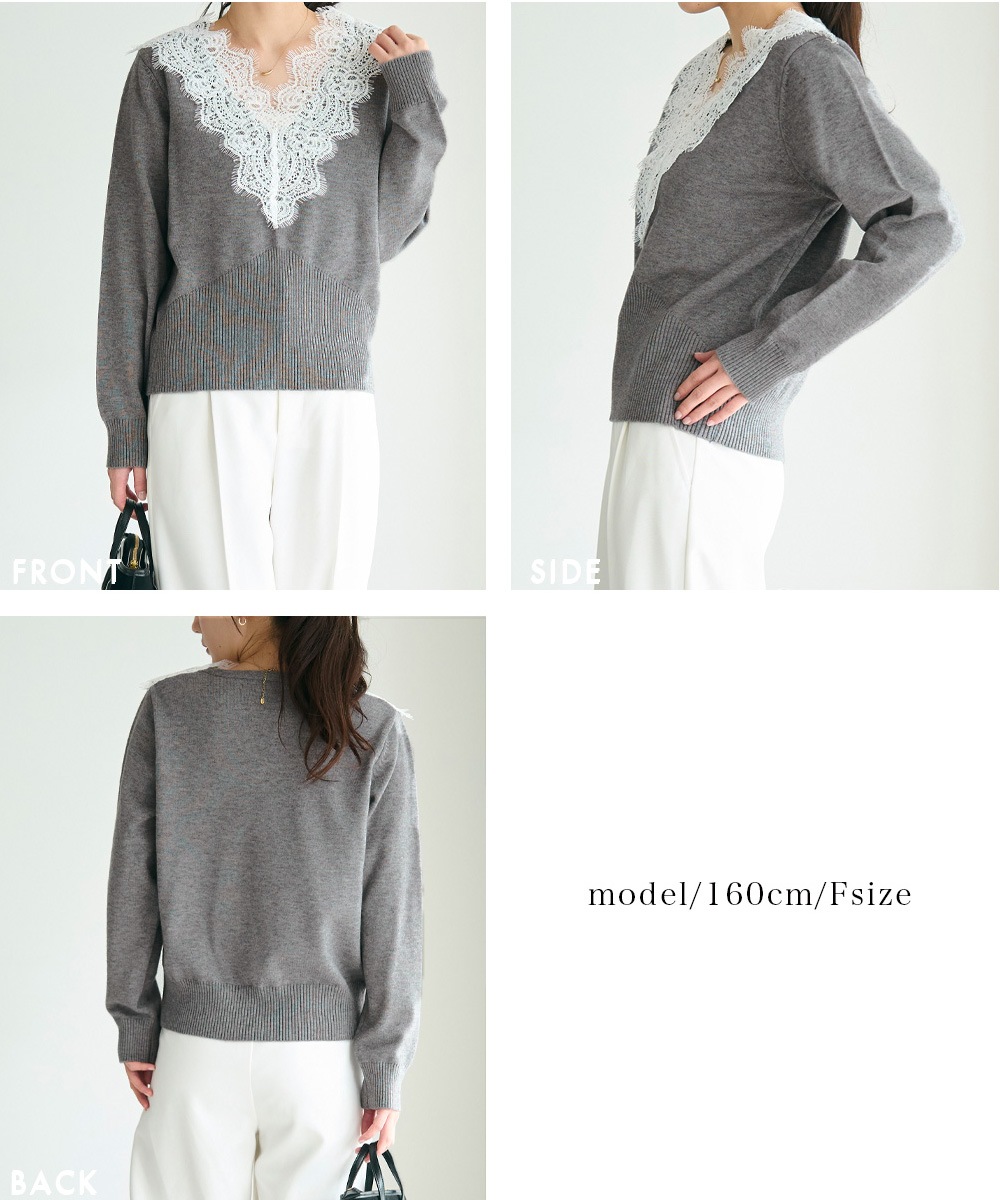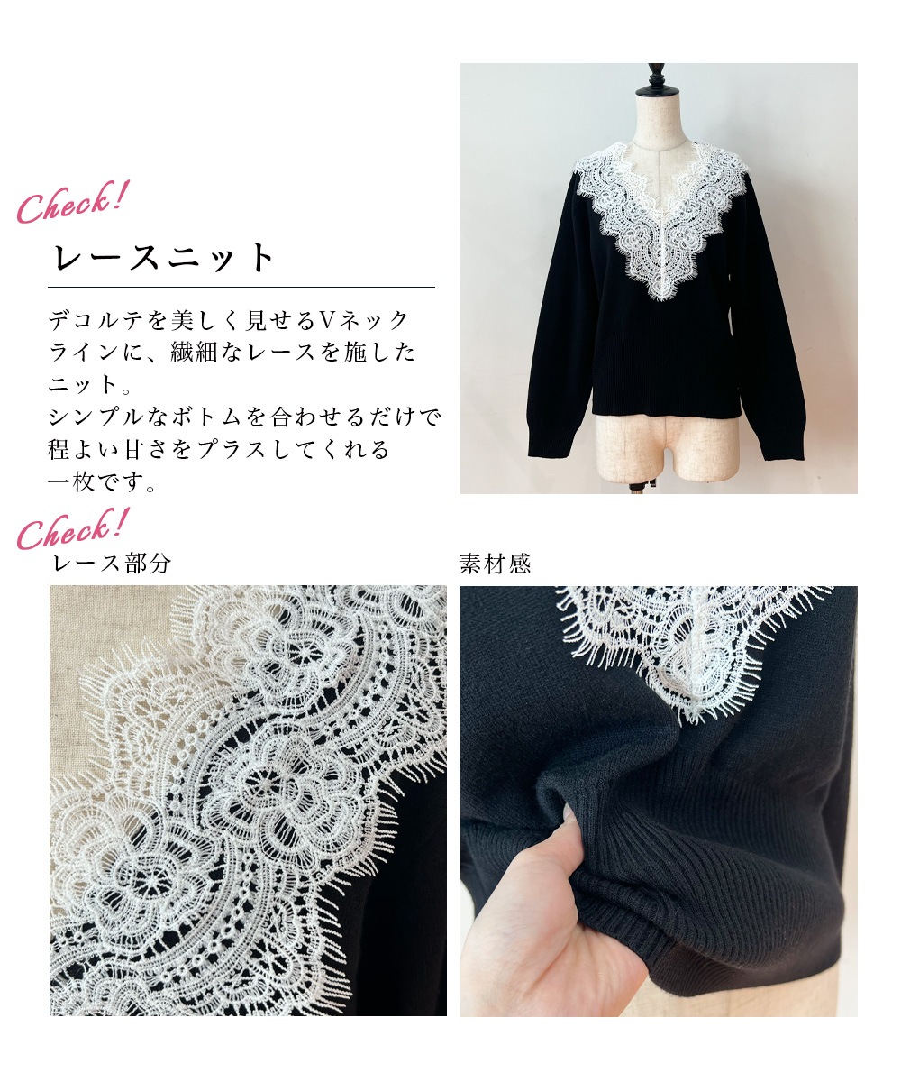 Vネックレースニット【宅配便】