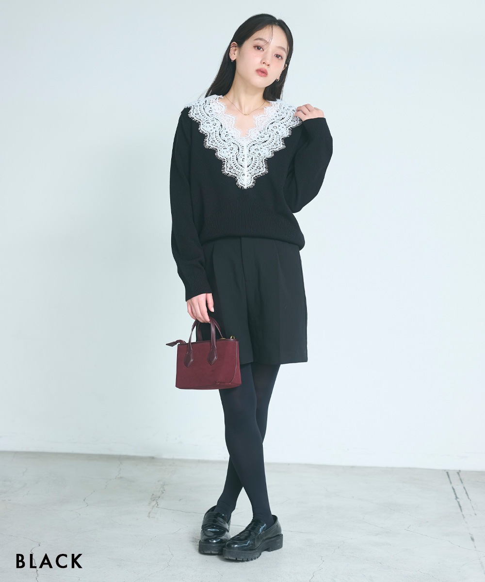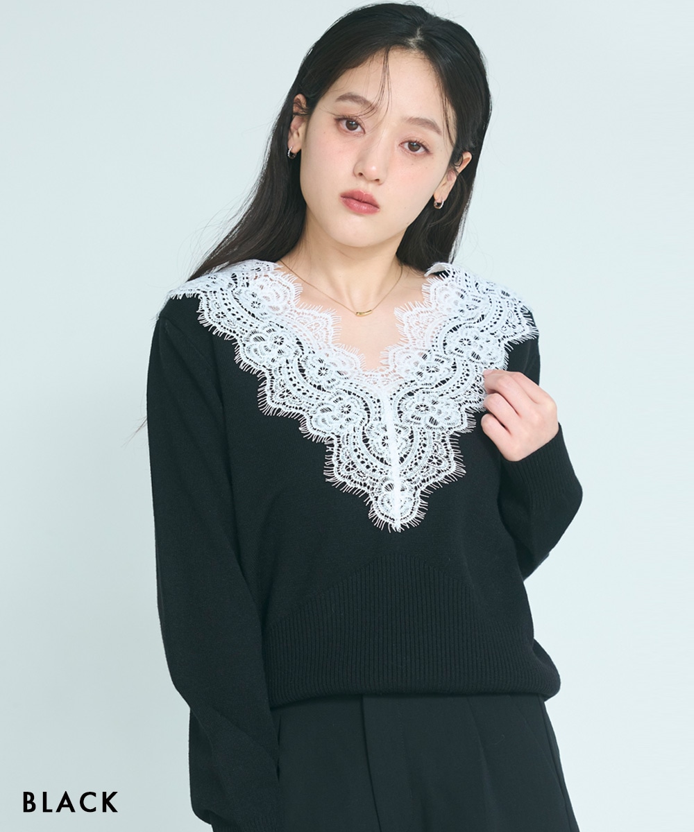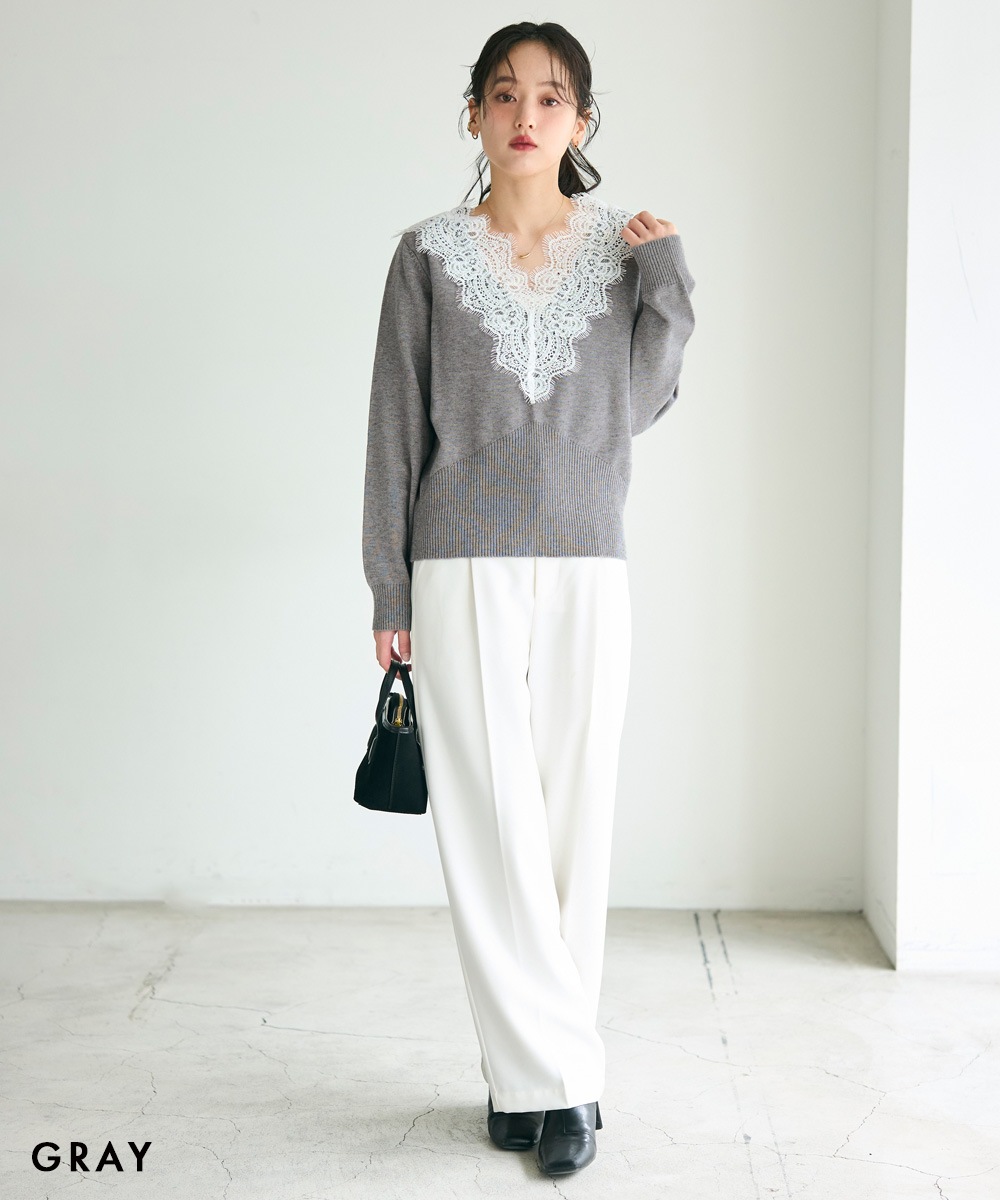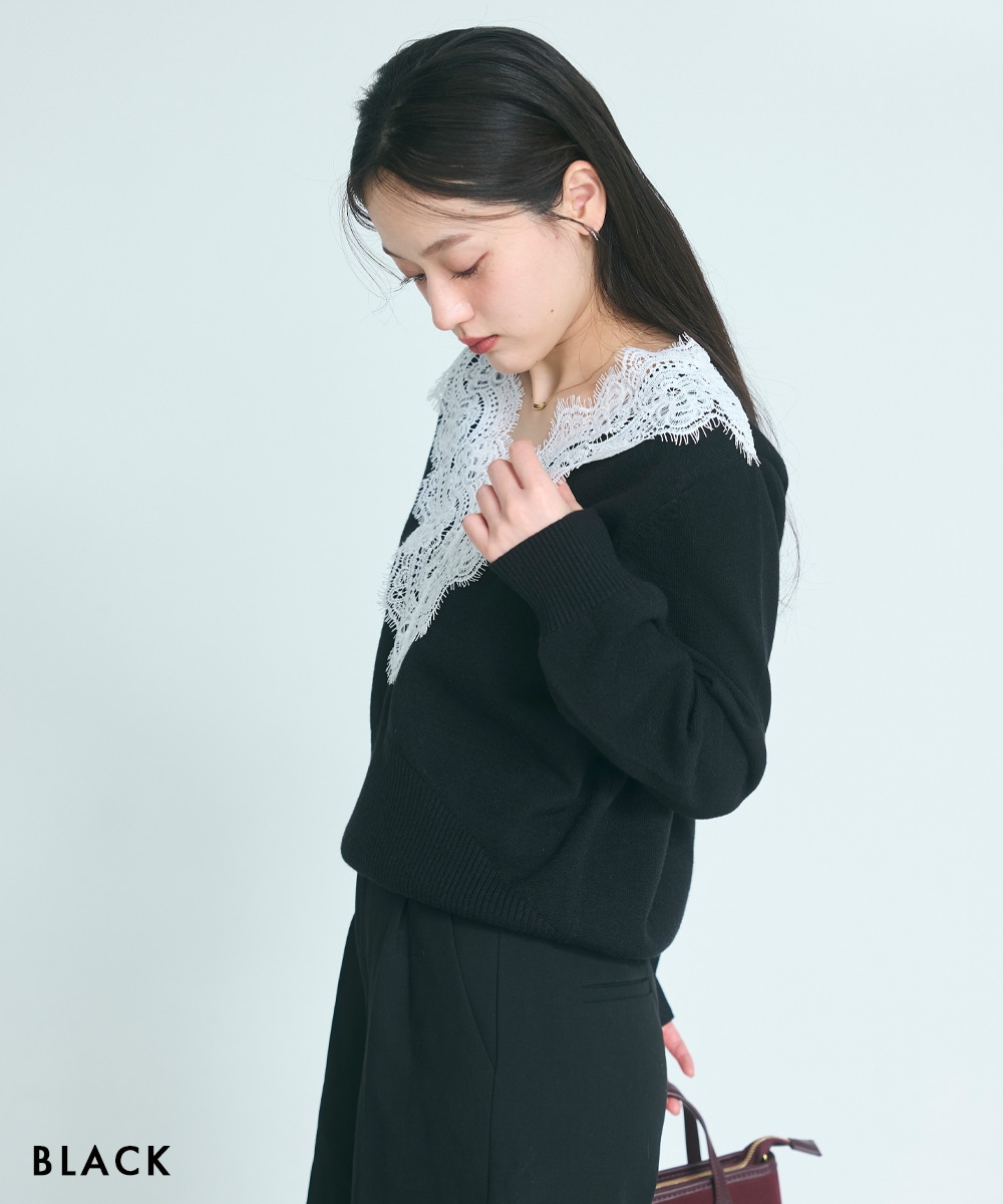 Vネックレースニット【宅配便】