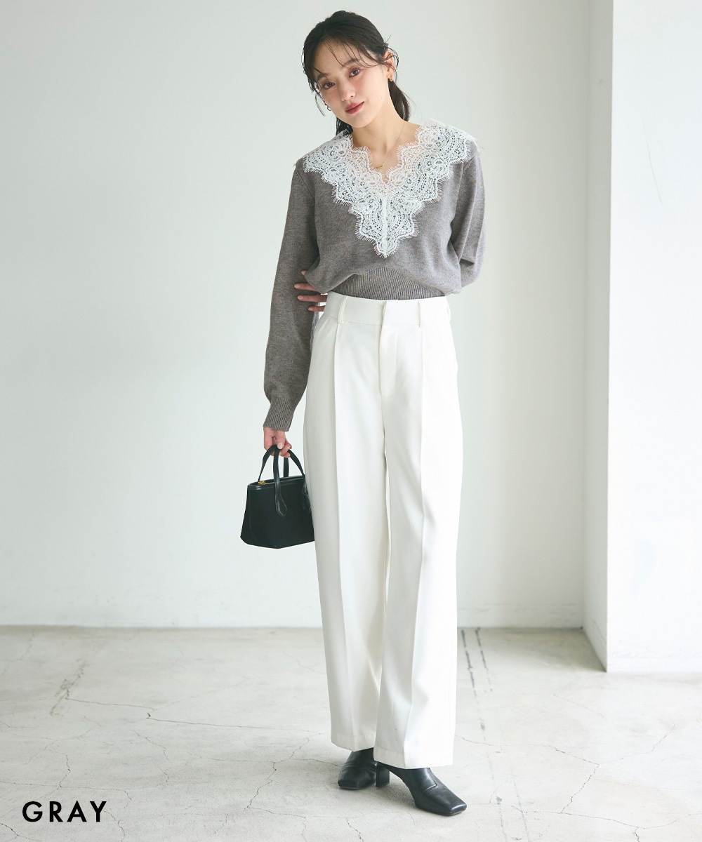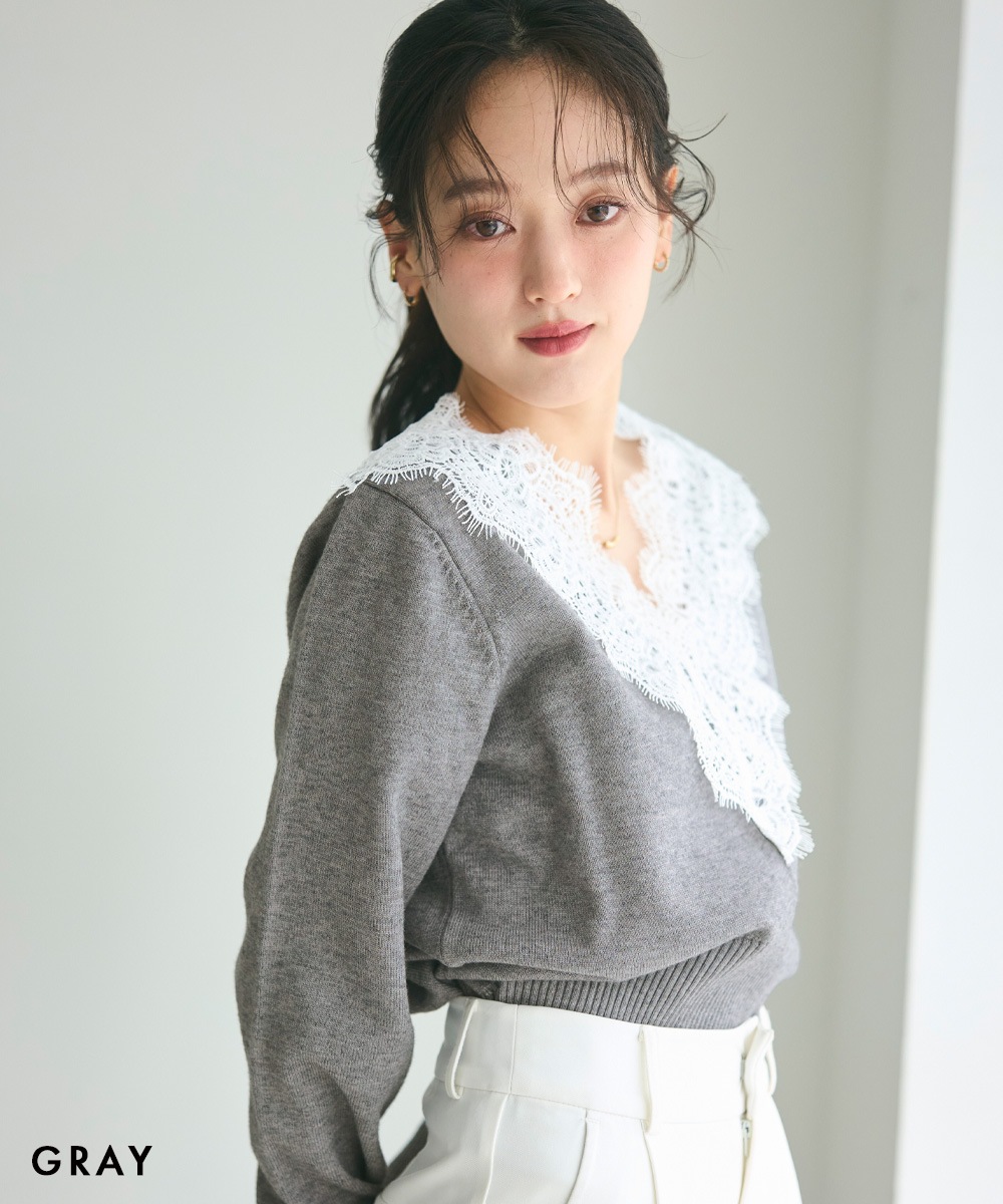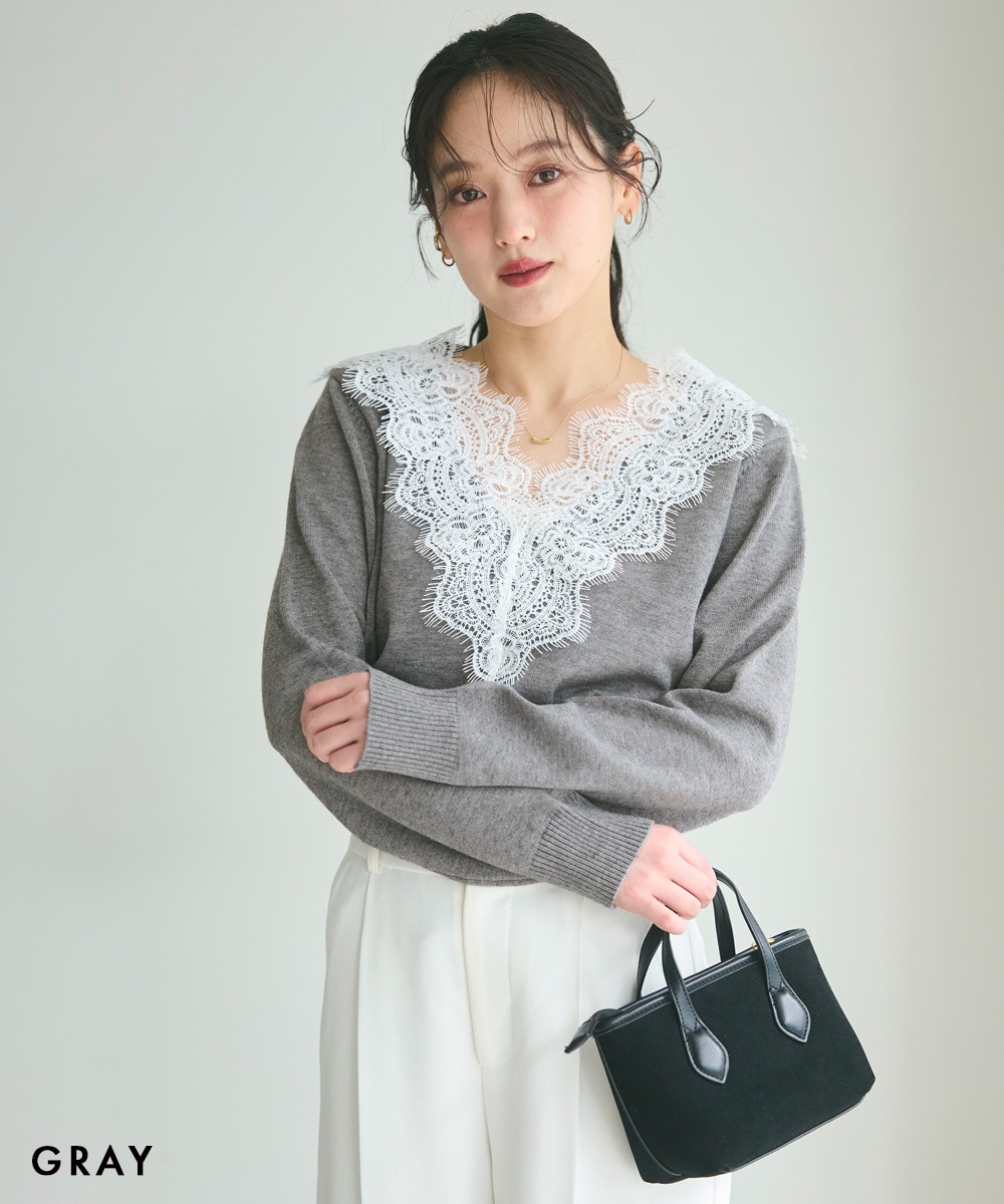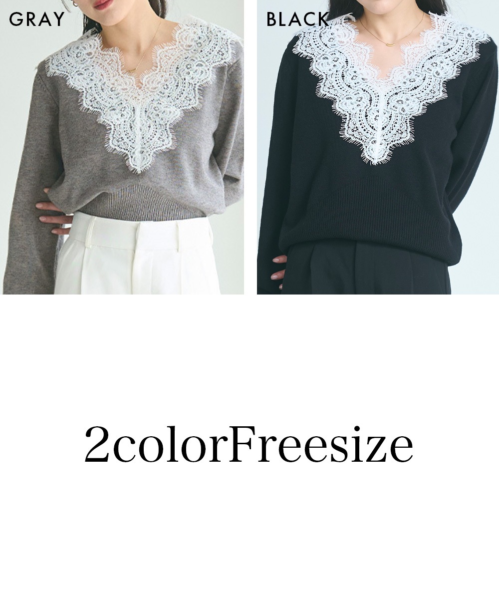 Vネックレースニット【宅配便】