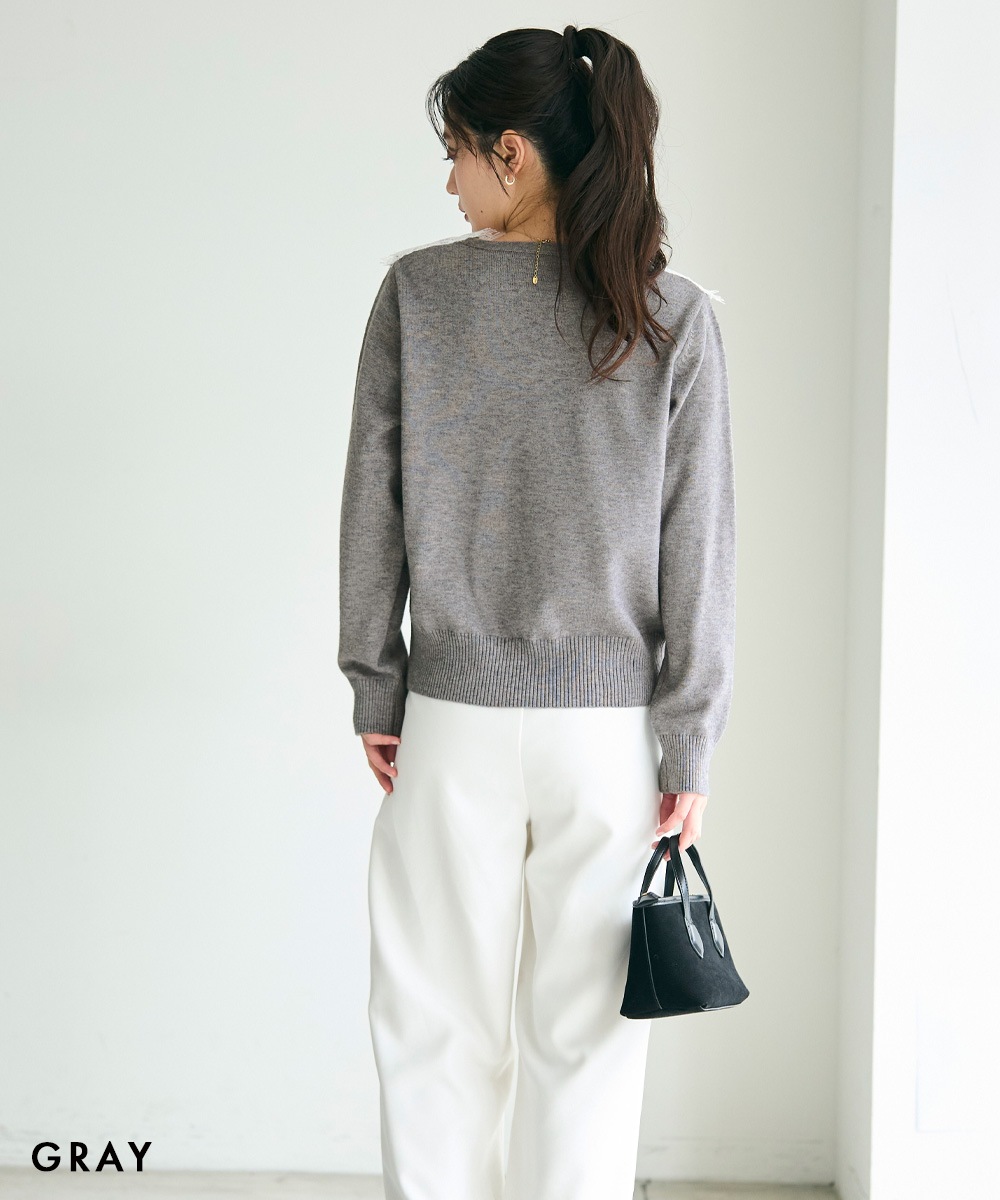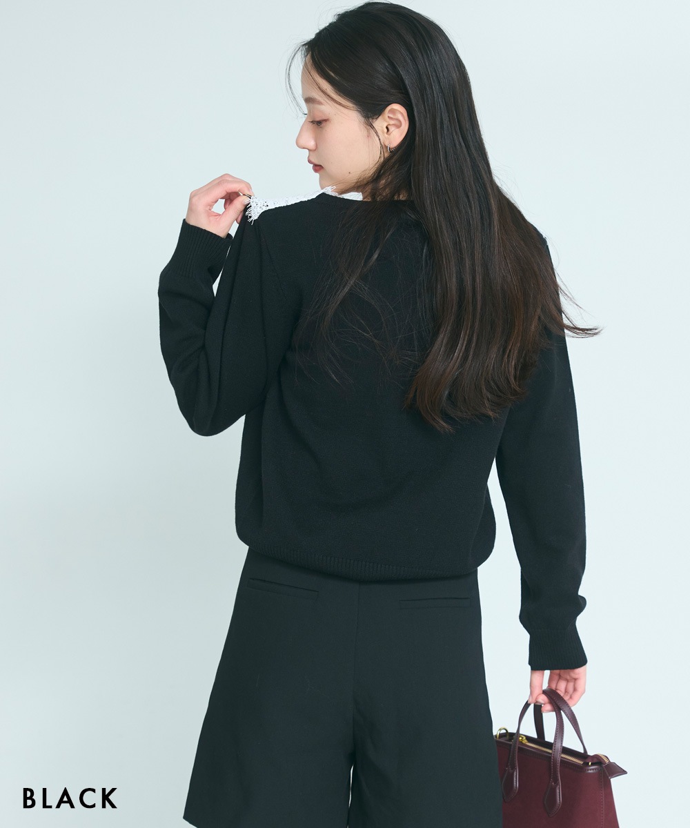 | 素材 | 表地:レーヨン30%,アクリル28%,ポリエステル28%,ナイロン14%,レース:ポリエステル100% |