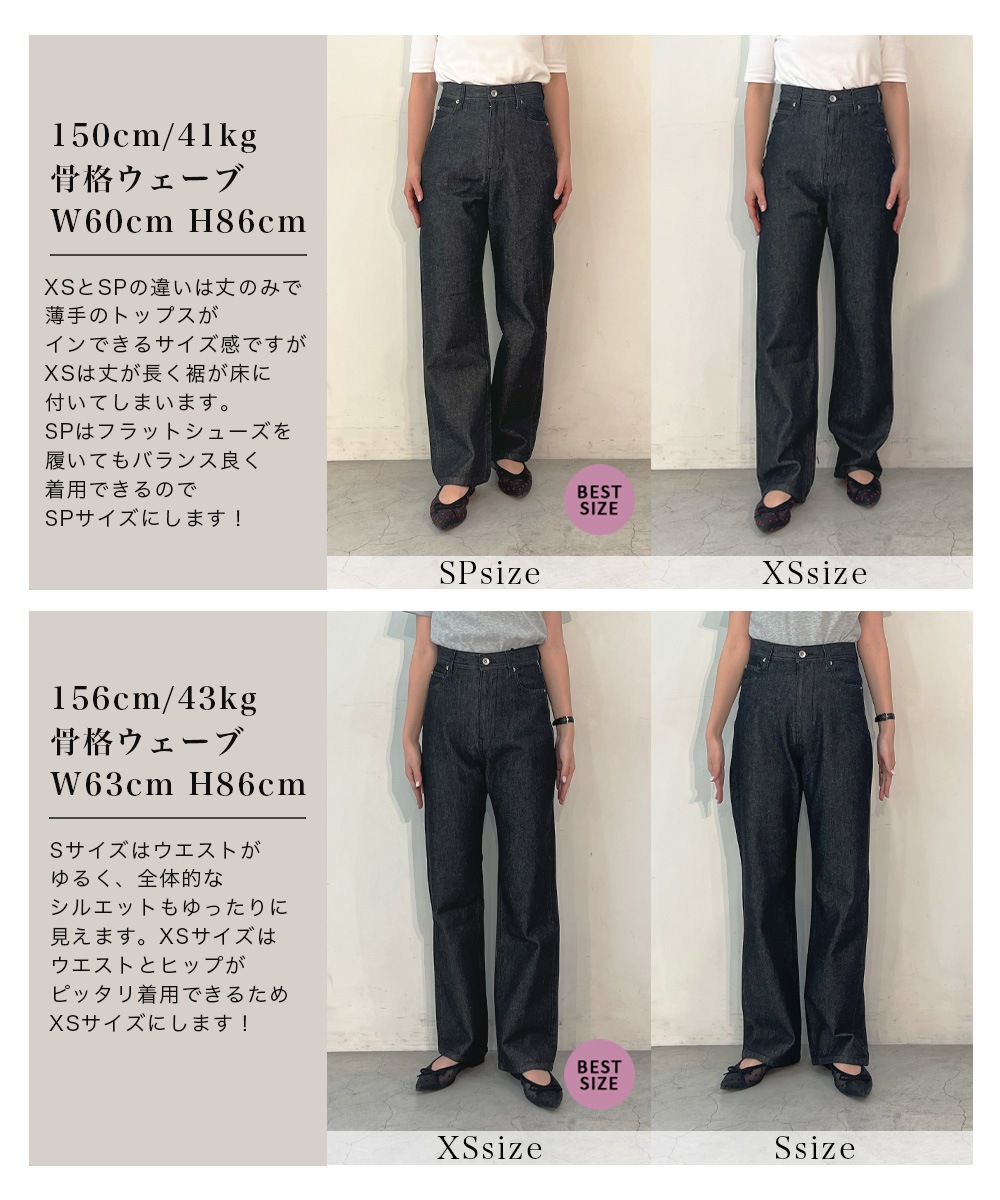 | サイズ | 【SP】:脇丈 約95cm/ウエスト 約65cm/ヒップ 約89cm/前股上 約30cm/股下 約65.5cm/太もも(一周) 約58.5cm/裾幅 約21cm 【XS】:脇丈 約100cm/ウエスト 約65cm/ヒップ 約89cm/前股上 約30cm/股下 約70.5cm/太もも(一周) 約58.5cm/裾幅 約21cm 【S】:脇丈 約101.5cm/ウエスト 約68cm/ヒップ 約92cm/前股上 約30cm/股下 約71.5cm/太もも(一周) 約60cm/裾幅 約22cm 【M】:脇丈 約103cm/ウエスト 約71cm/ヒップ 約95cm/前股上 約30cm/股下 約72.5cm/太もも(一周) 約61.5cm/裾幅 約23cm 【L】:脇丈 約103cm/ウエスト 約74cm/ヒップ 約98cm/前股上 約30cm/股下 約73.5cm/太もも(一周) 約63cm/裾幅 約30.8cm ![]() |