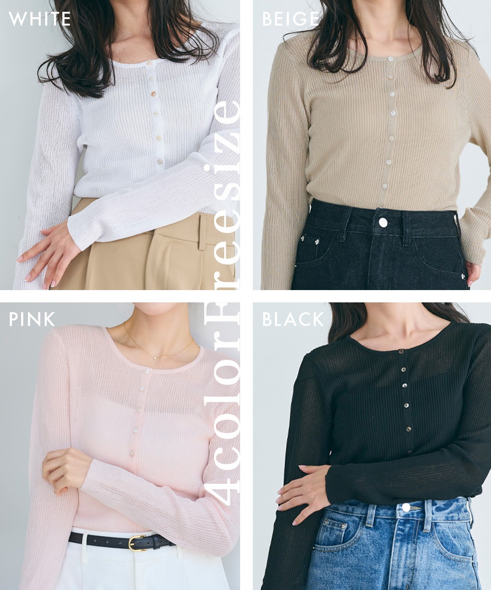 | モデル | 【WHITE,BEIGE,BLACK】SAKI 身長:158cm Fサイズ着用 【PINK】KAORI 身長:170cm Fサイズ着用 |