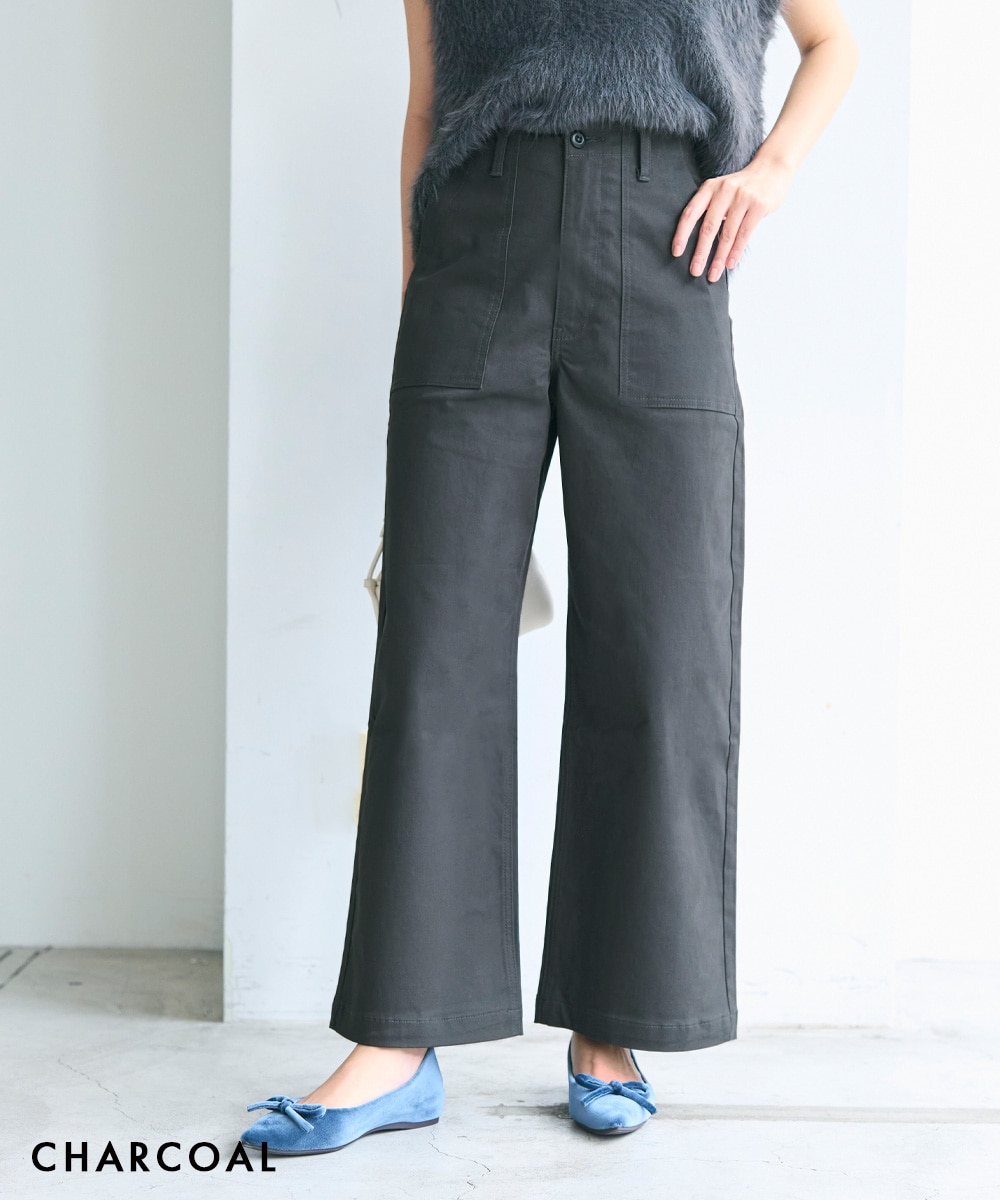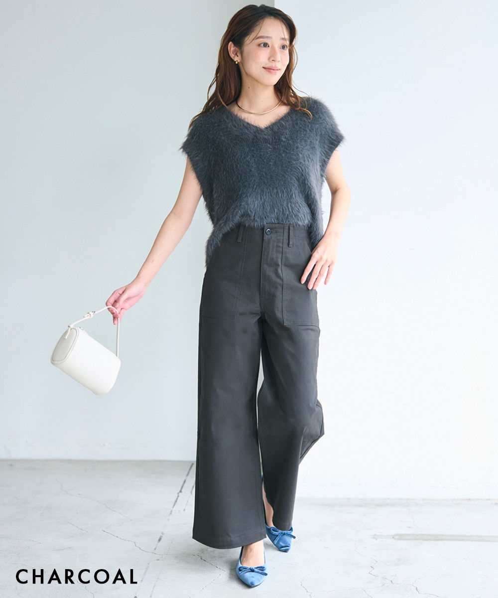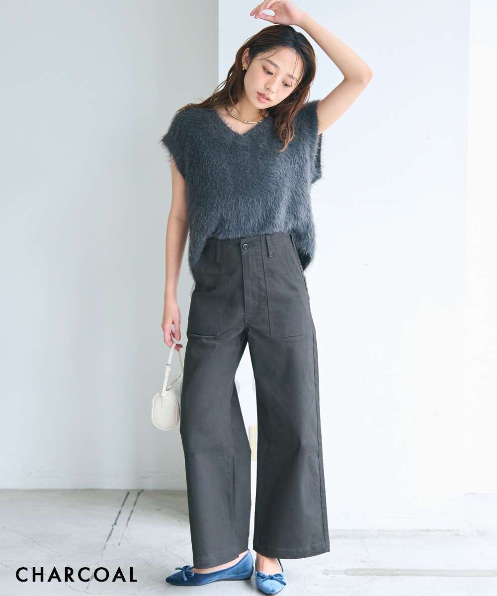 【XS】:脇丈 約97cm/ウエスト 約65cm/前股上 約26cm/後股上 約37cm/股下 約67cm/太もも(一周) 約61cm/裾幅 約28cm/ヒップ 約92cm 【S】:脇丈 約99cm/ウエスト 約67cm/前股上 約26cm/後股上 約37cm/股下 約69cm/太もも(一周) 約63cm/裾幅 約28cm/ヒップ 約94cm 【M】:脇丈 100.5cm/ウエスト 約70cm/前股上 約26cm/後股上 約37cm/股下 約70.5cm/太もも(一周) 約65cm/裾幅 約28cm/ヒップ 約97cm ![]() |