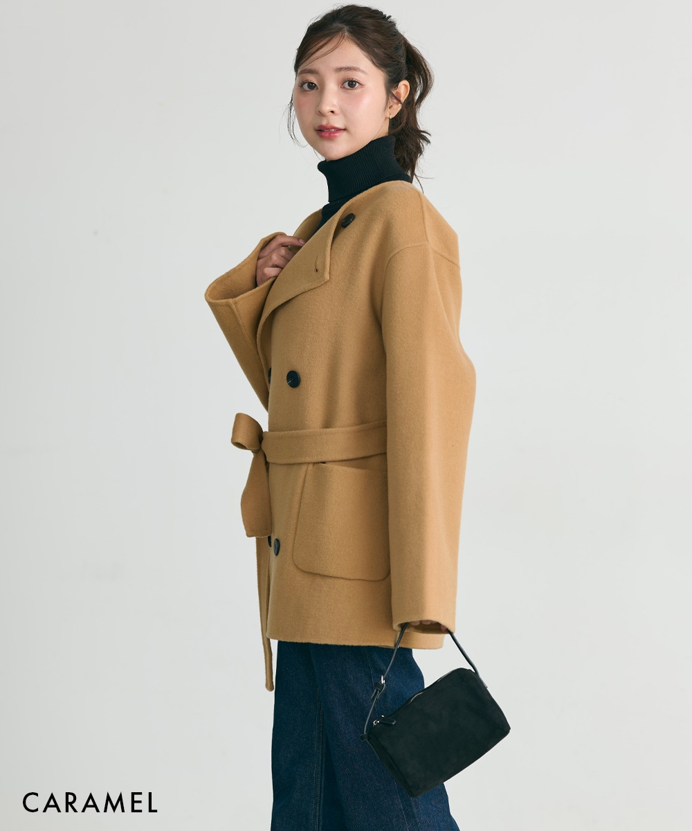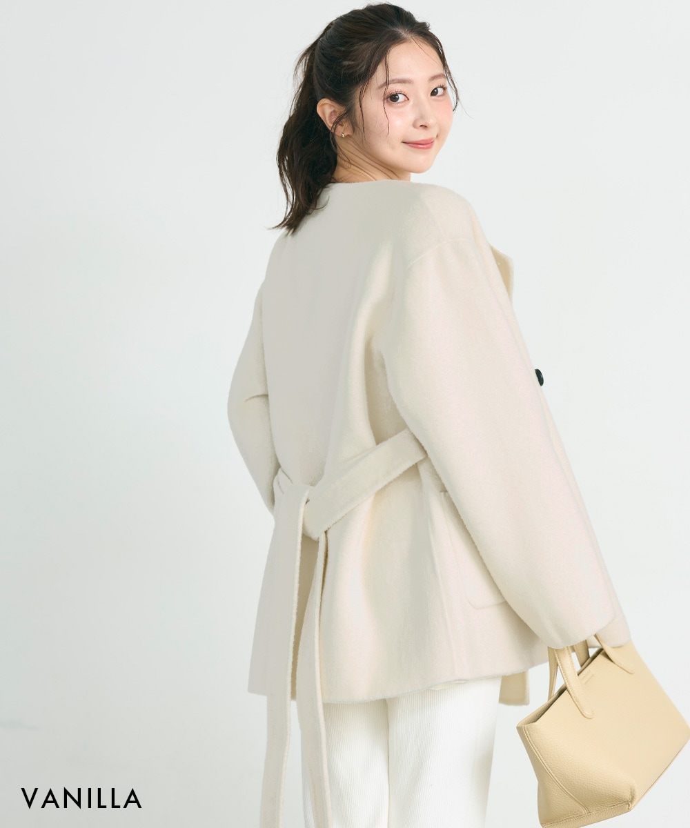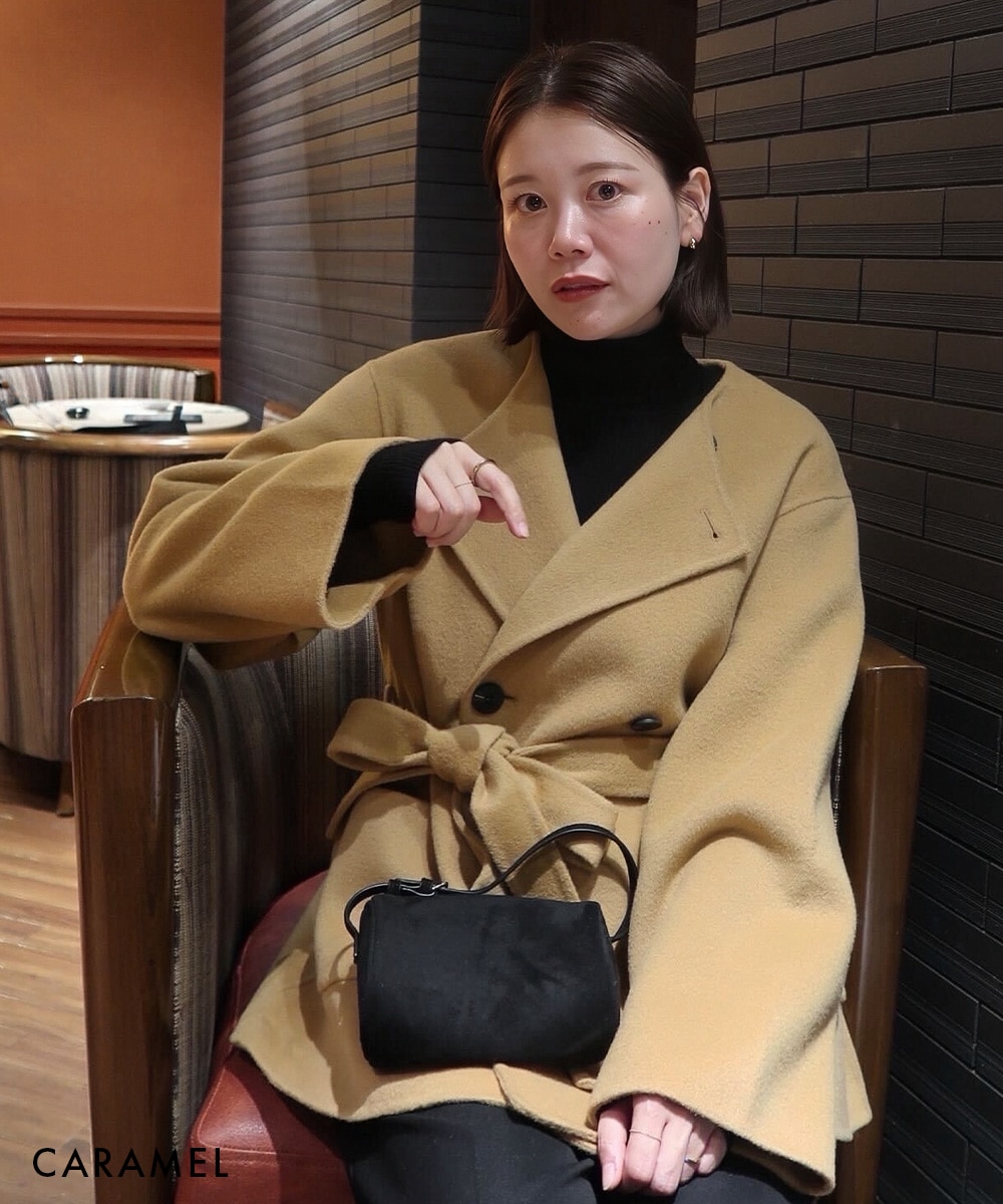 【HARUKA DESIGN】ノーカラー2WAYリバーミドルコート【宅配便】
