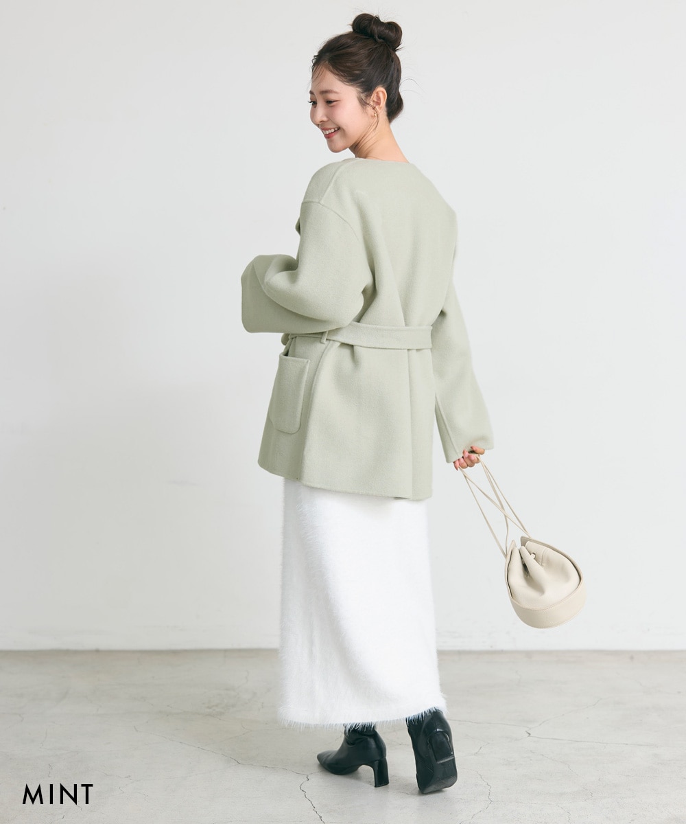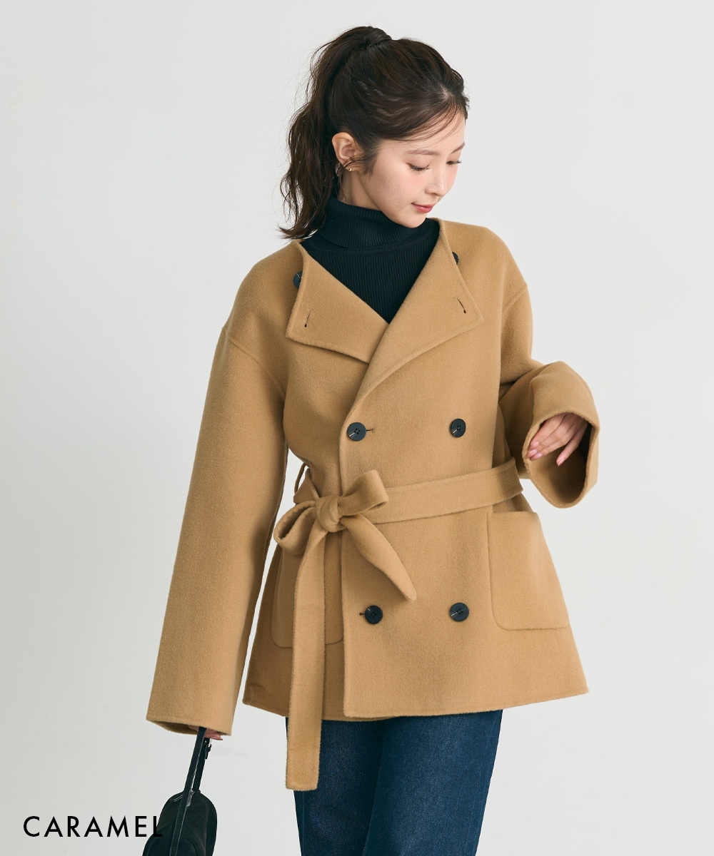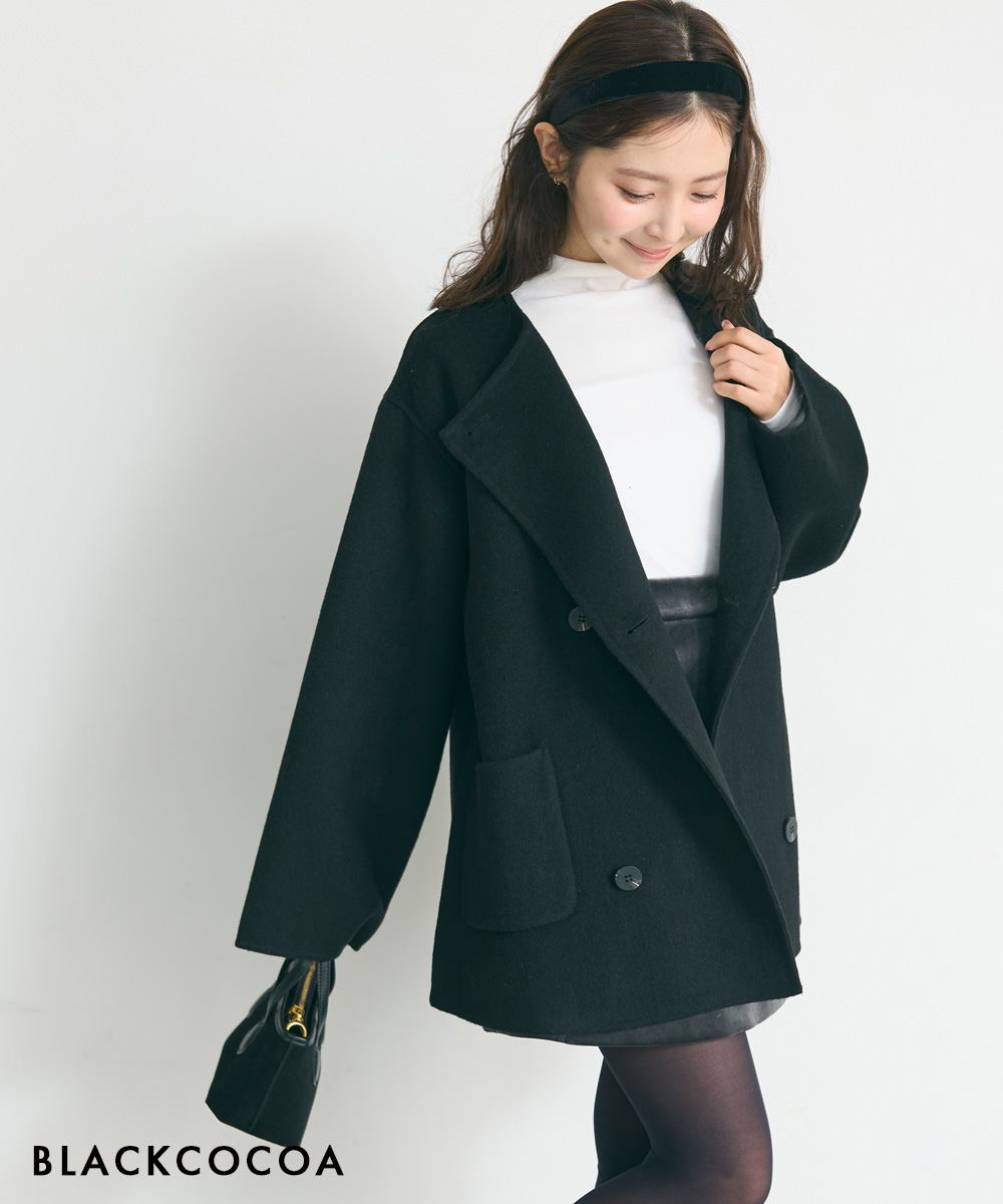 【HARUKA DESIGN】ノーカラー2WAYリバーミドルコート【宅配便】