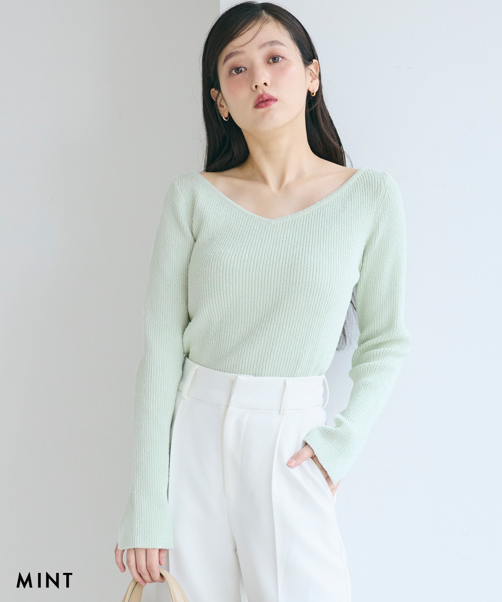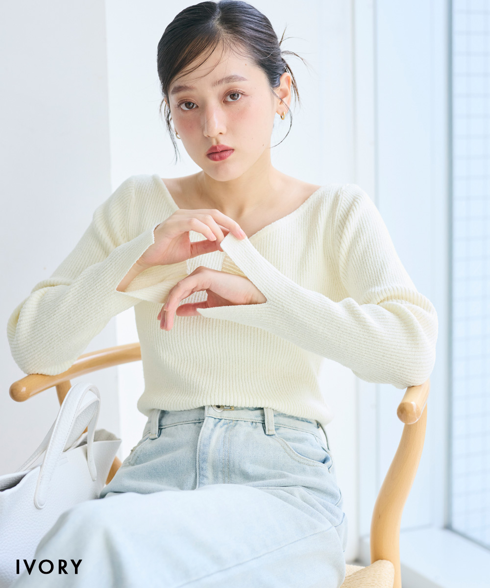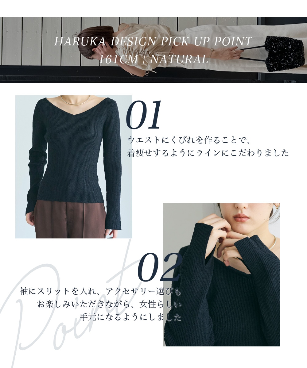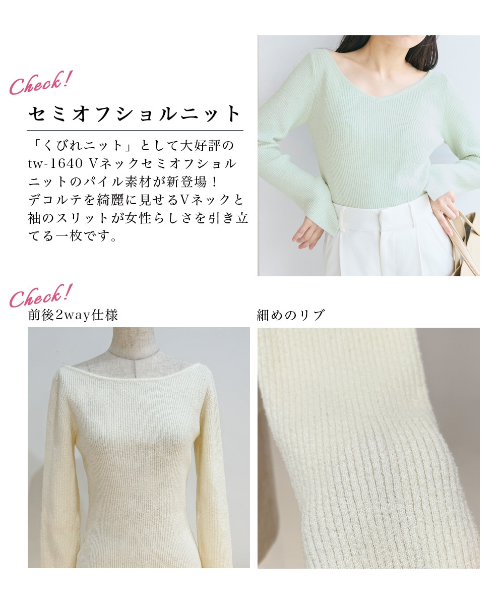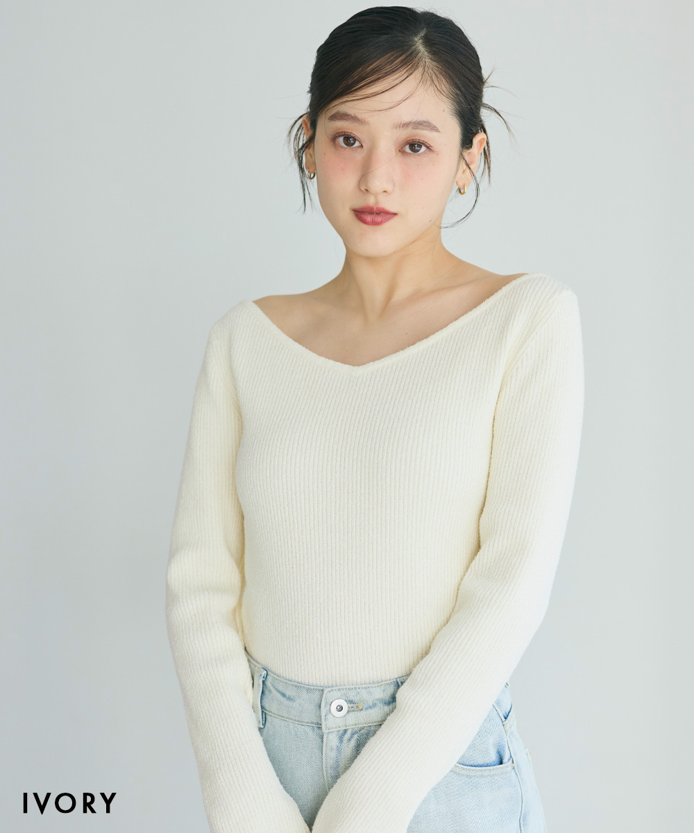 【HARUKA DESIGN】Vネックパイルセミオフショルニット【宅配便】