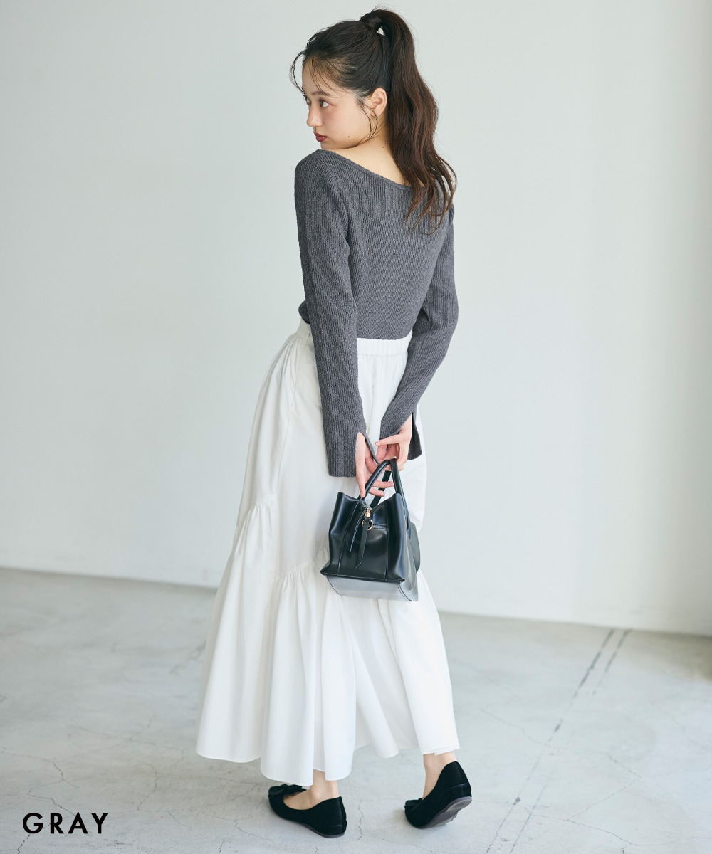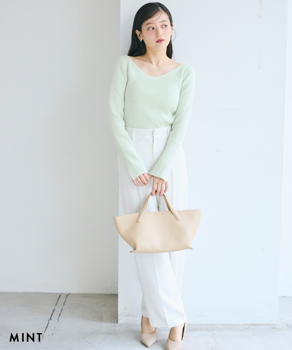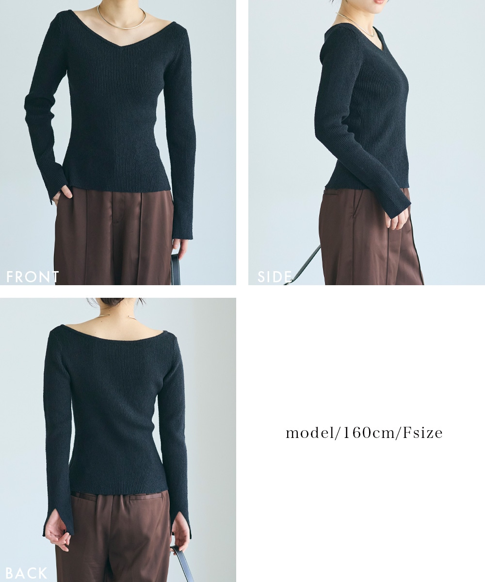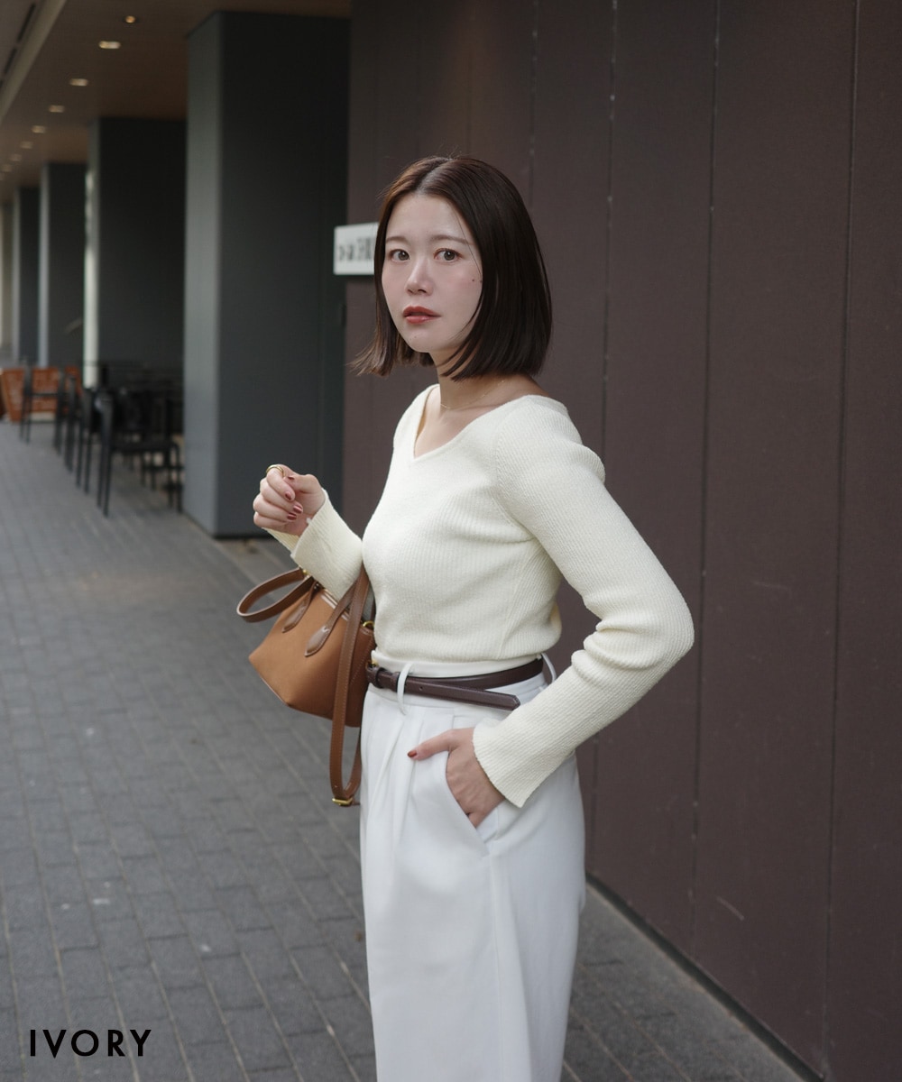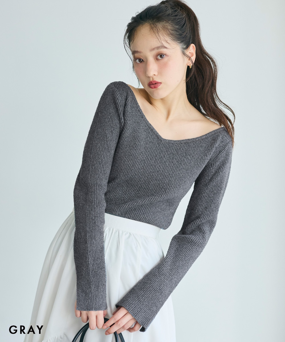 【HARUKA DESIGN】Vネックパイルセミオフショルニット【宅配便】