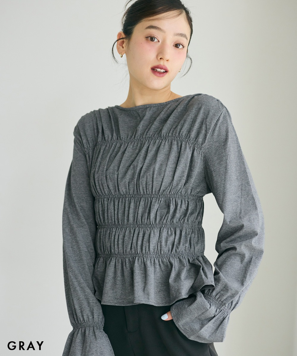 【HARUKA DESIGN】ギャザーティアードフレアブラウス【宅配便】