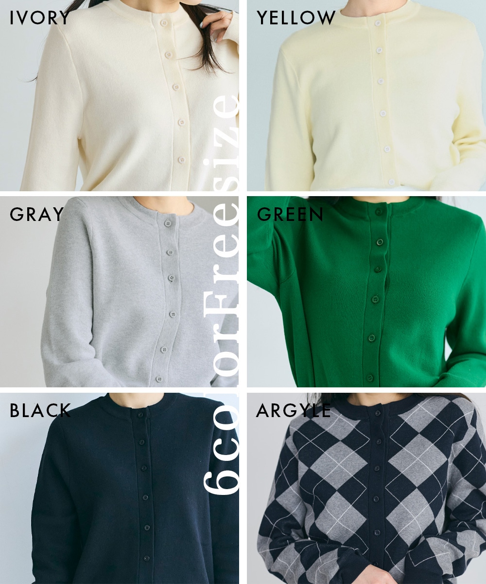 | モデル | 【IVORY,GRAY,GREEN,BLACK,ARGYLE】SAYANE 身長:160cm Fサイズ着用【YELLOW】SAKI 身長:158cm Fサイズ着用 |