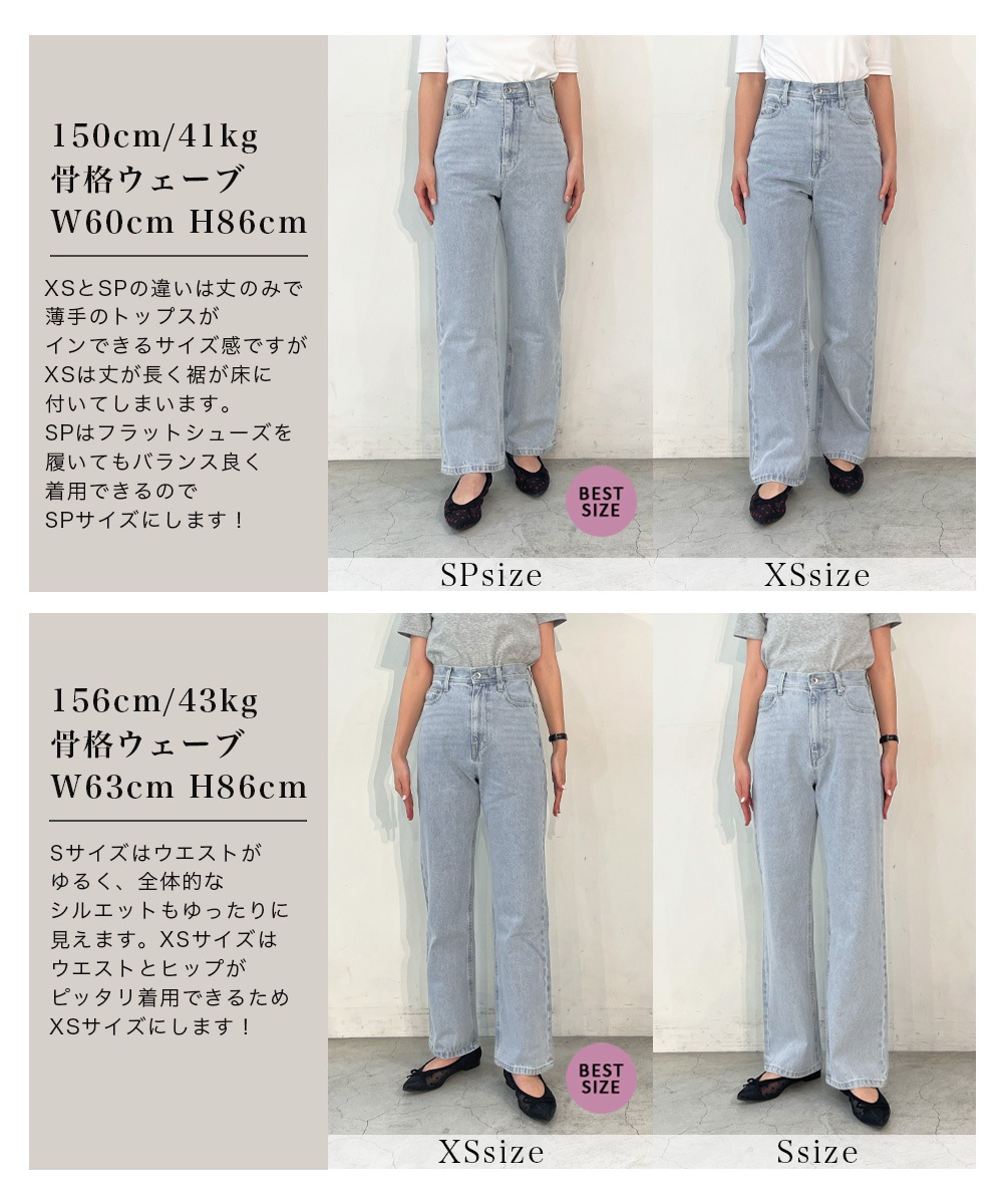 | サイズ | 【SP】:脇丈 約95cm/ウエスト 約64cm/ヒップ 約88cm/前股上 約30cm/股下 約65.5cm/太もも(一周) 約58cm/裾幅 約21cm 【XS】:脇丈 約100cm/ウエスト 約64cm/ヒップ 約88cm/前股上 約30cm/股下 約70.5cm/太もも(一周) 約58cm/裾幅 約21cm 【S】:脇丈 約101.5cm/ウエスト 約67cm/ヒップ 約91cm/前股上 約30cm/股下 約71.5cm/太もも(一周) 約60cm/裾幅 約22cm 【M】:脇丈 約103cm/ウエスト 約70cm/ヒップ 約94cm/前股上 約30cm/股下 約72.5cm/太もも(一周) 約62cm/裾幅 約22cm ![]() |