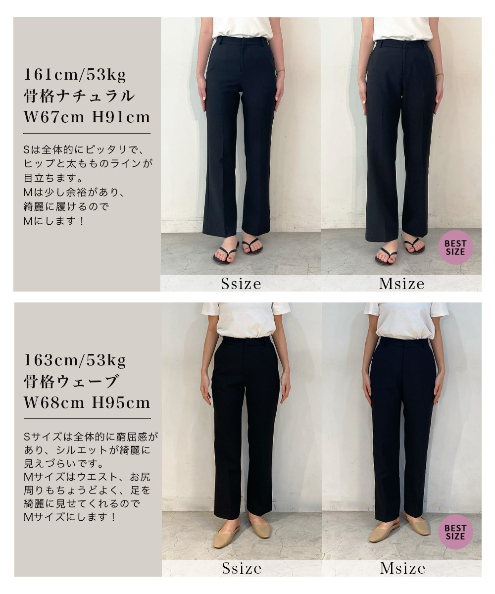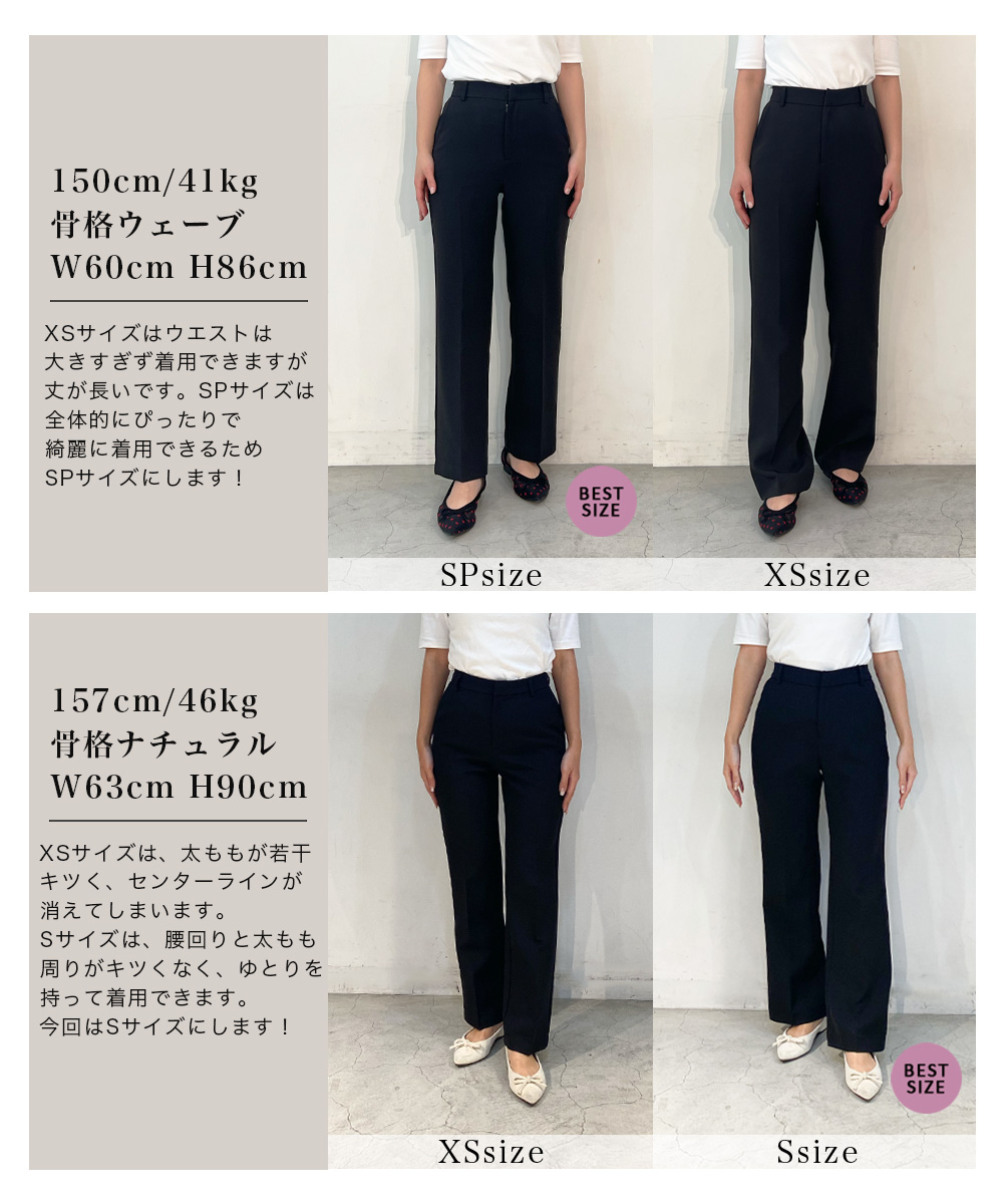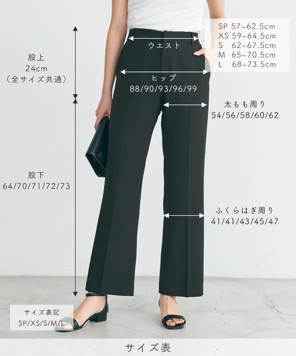 | サイズ | 【SP】:脇丈 約89cm/ウエスト 約57~62.5cm/ヒップ 約88cm/前股上 約24cm/股下 約64cm/太もも(一周) 約54cm/裾幅 約21.5cm/ふくらはぎ(一周) 約41cm 【XS】:脇丈 約95cm/ウエスト 約59~64.5cm/ヒップ 約90cm/前股上 約24cm/股下 約70cm/太もも(一周) 約56cm/裾幅 約21.5cm/ふくらはぎ(一周) 約41cm 【S】:脇丈 約96cm/ウエスト 約62~67.5cm/ヒップ 約93cm/前股上 約24cm/股下 約71cm/太もも(一周) 約58cm/裾幅 約22.5cm/ふくらはぎ(一周) 約43cm 【M】:脇丈 約97cm/ウエスト 約65~70.5cm/ヒップ 約96cm/前股上 約24cm/股下 約72cm/太もも(一周) 約60cm/裾幅 約23.5cm/ふくらはぎ(一周) 約45cm 【L】:脇丈 約98cm/ウエスト 約68~73.5cm/ヒップ 約99cm/前股上 約24cm/股下 約73cm/太もも(一周) 約62cm/裾幅 約24.5cm/ふくらはぎ(一周) 約47cm ![]() |