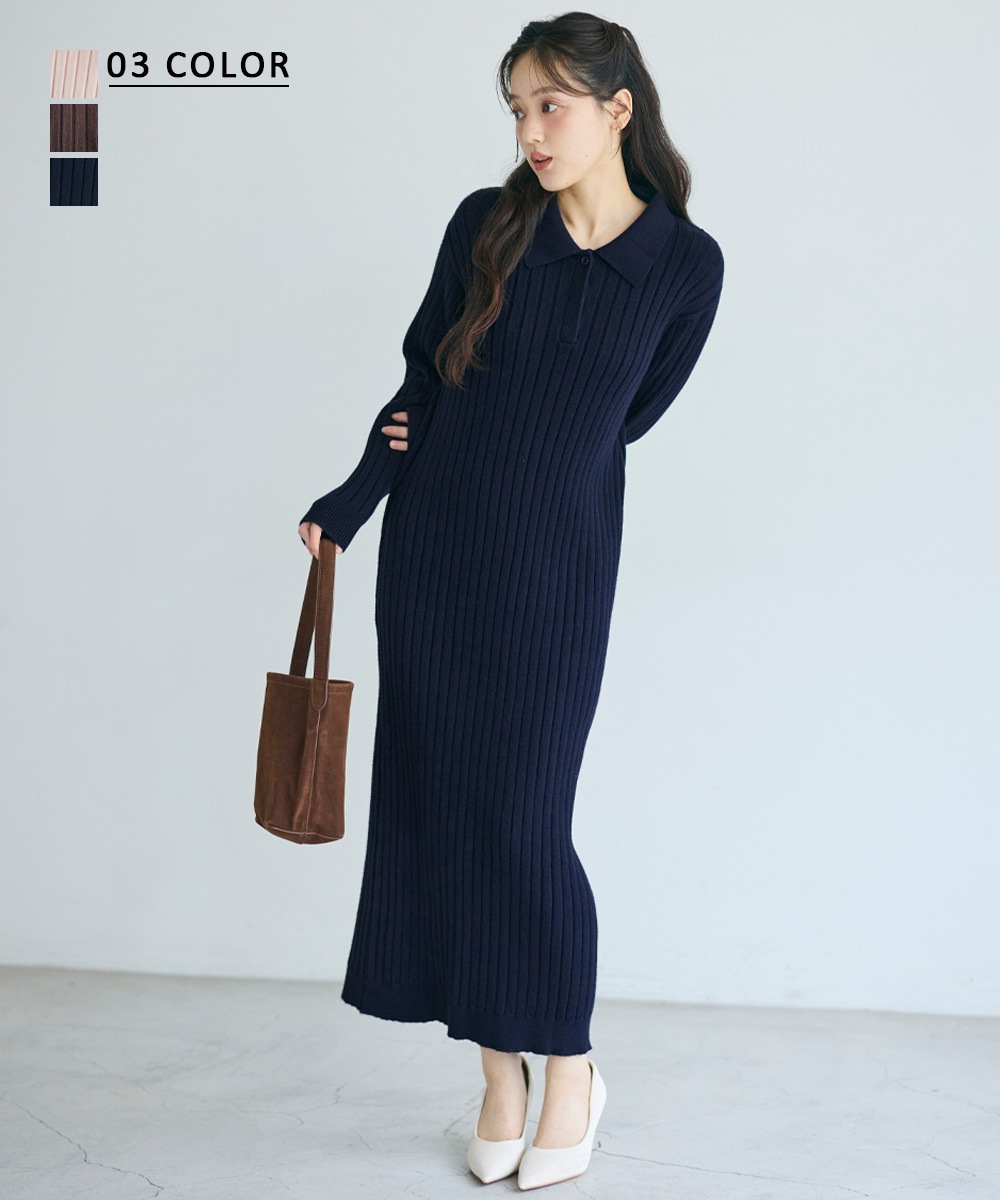 衿付きリブワンピース 【宅配便】