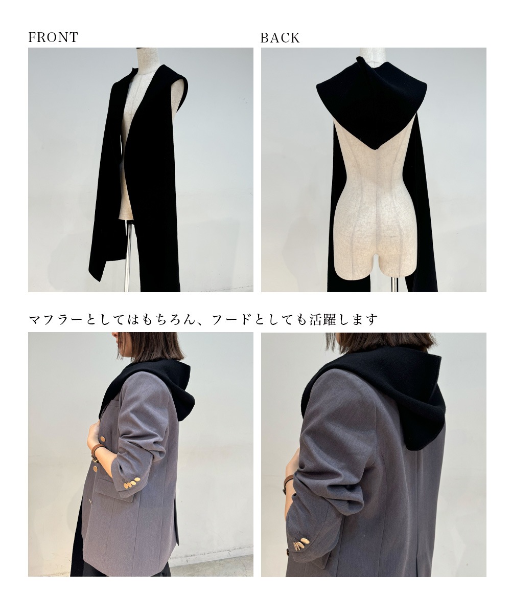 | サイズ | フードからストール端まで 約130cm/幅 約32cm/フード幅 約35cm/フード丈 約28cm |