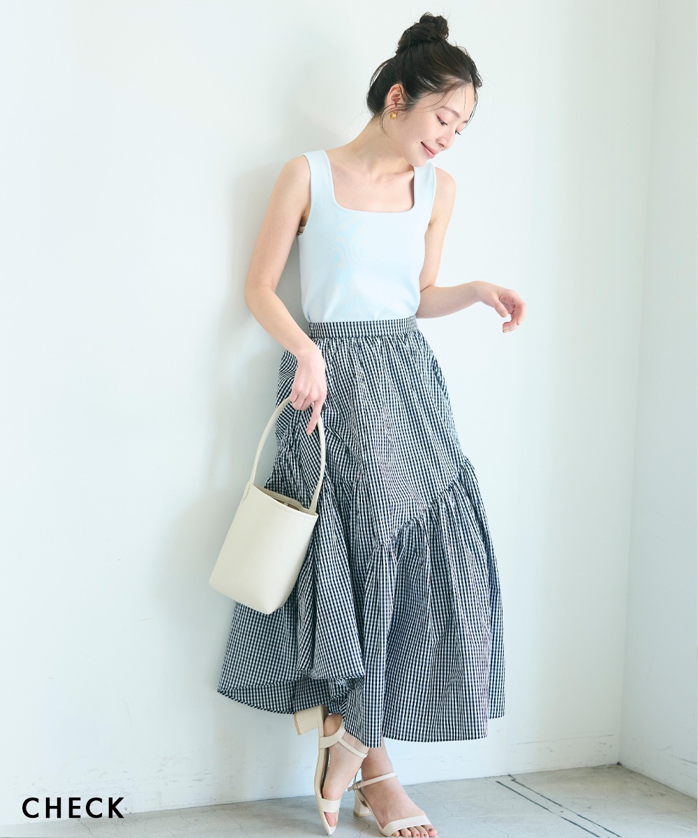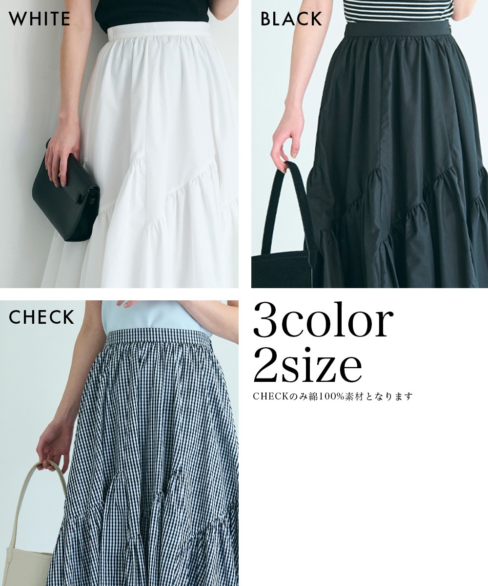 | 素材 | 【WHITE,BLACK】表地:ポリエステル80%,レーヨン20% 裏地:ポリエステル100% 【CHECK】表地:綿100%,裏地:ポリエステル100% |