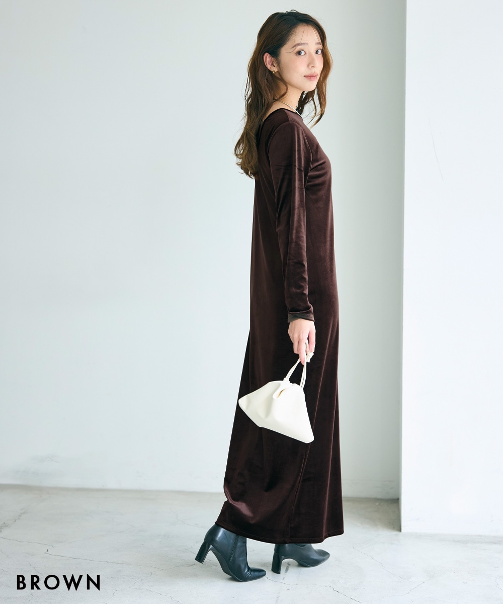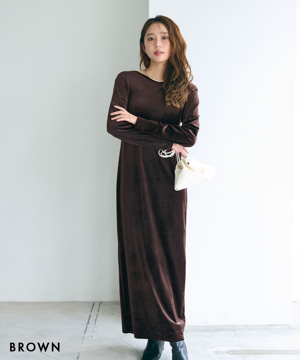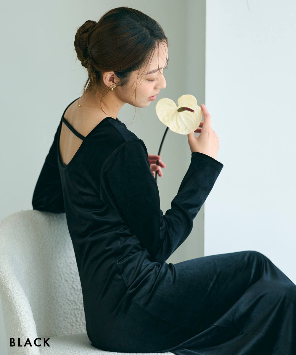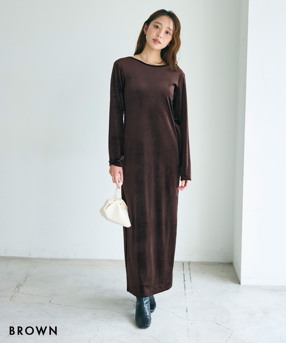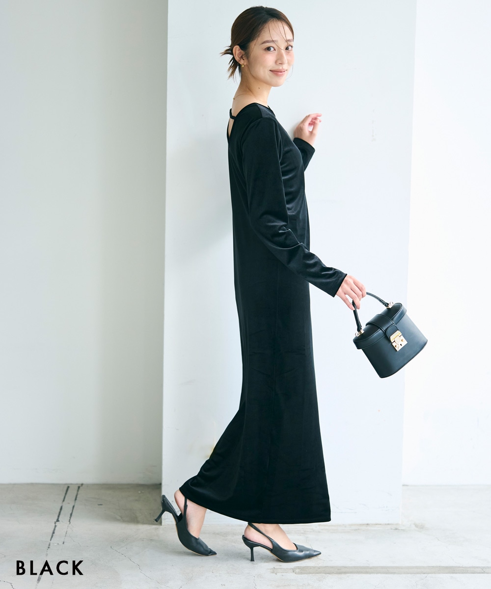 バックシャンベロアマキシワンピース【宅配便】