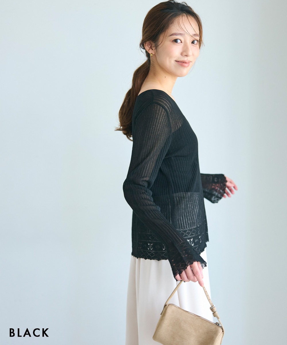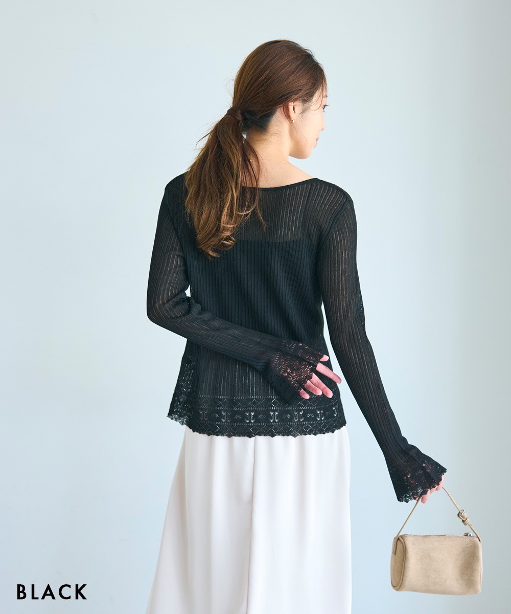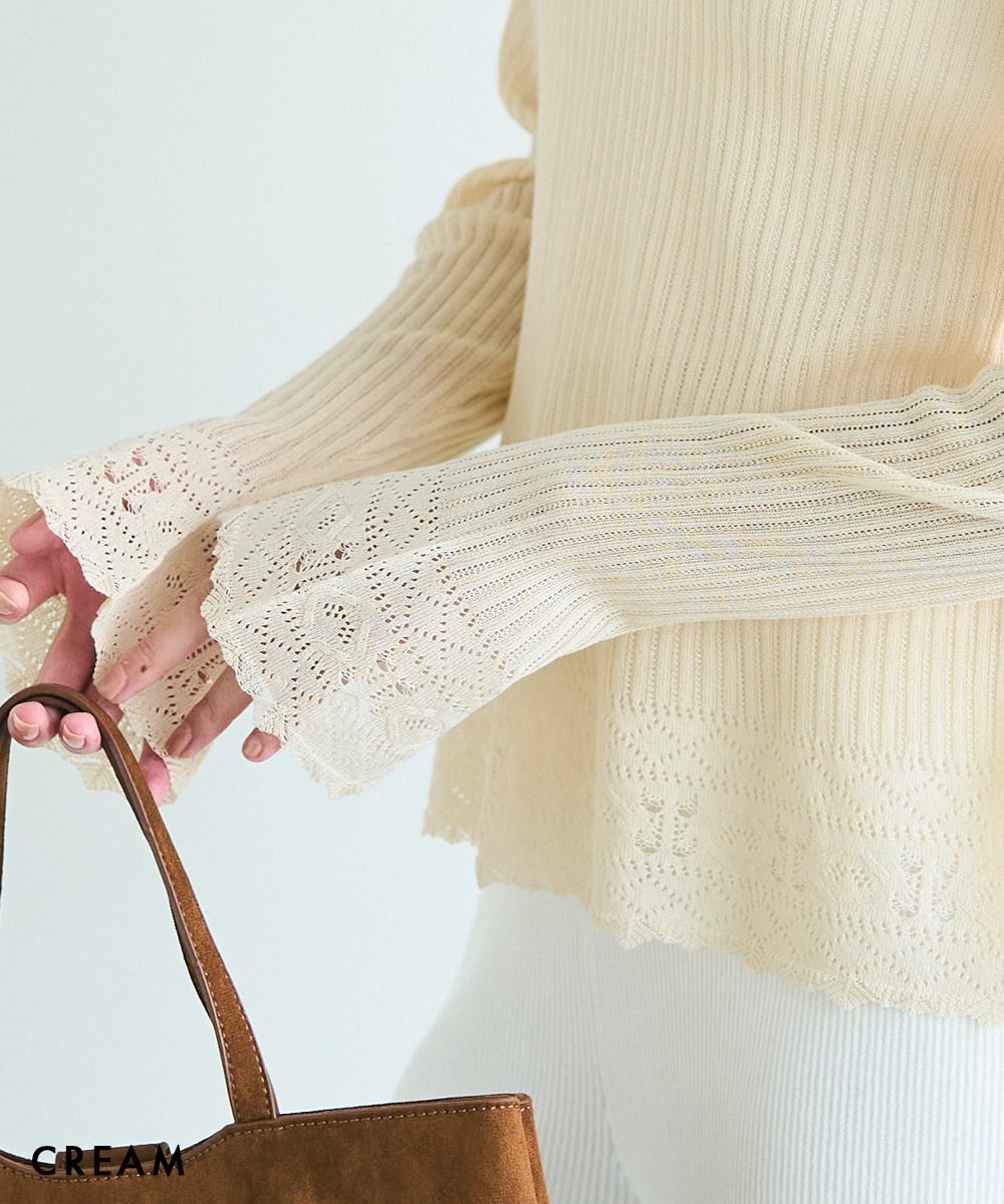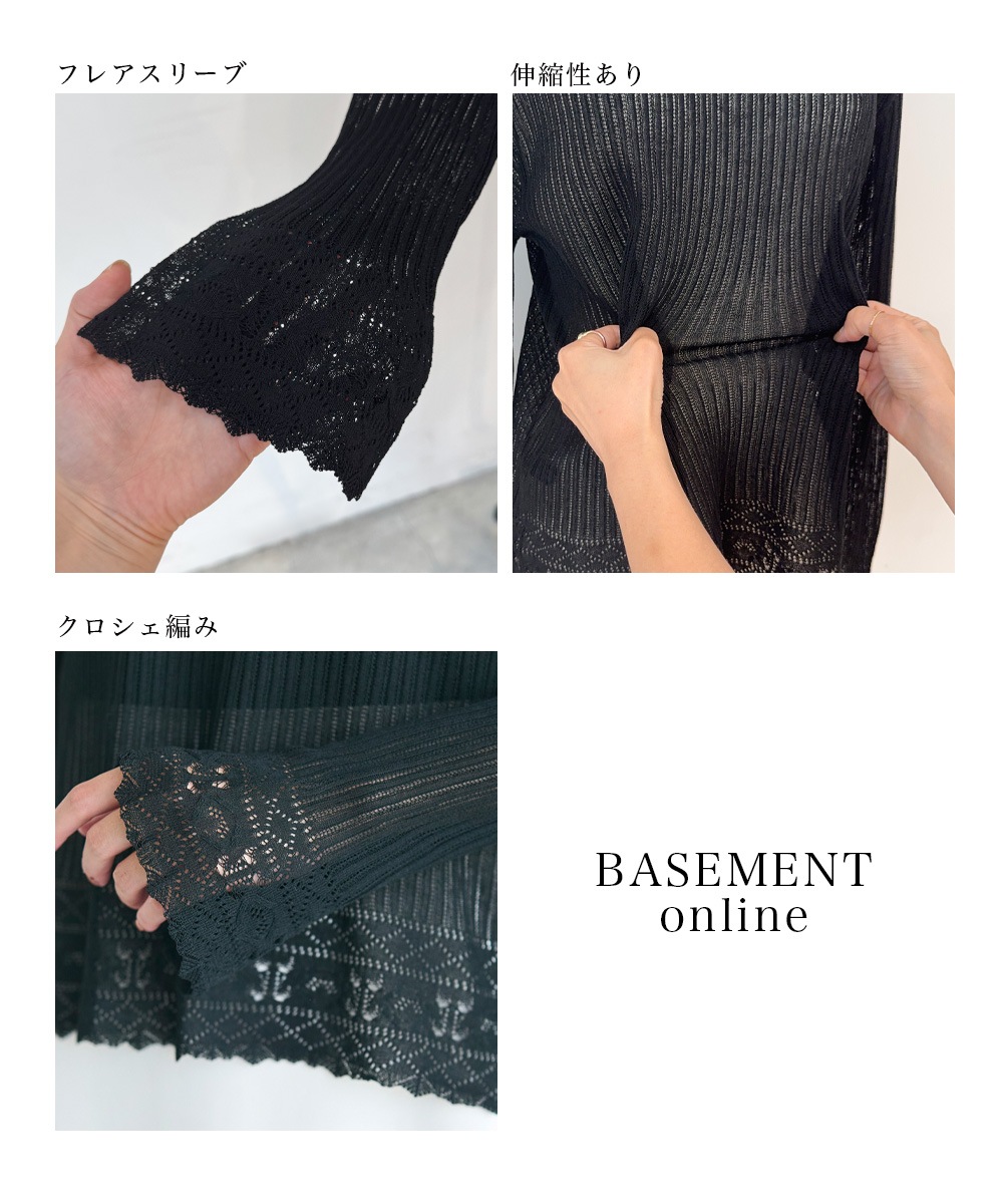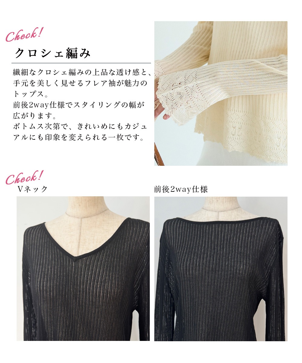 袖フレアクロシェ編みトップス【宅配便】