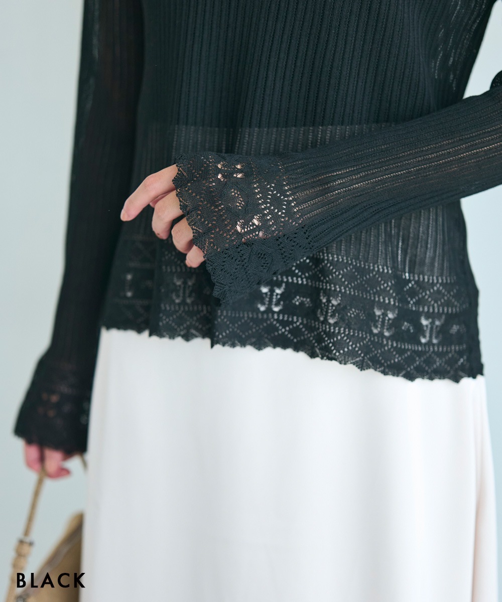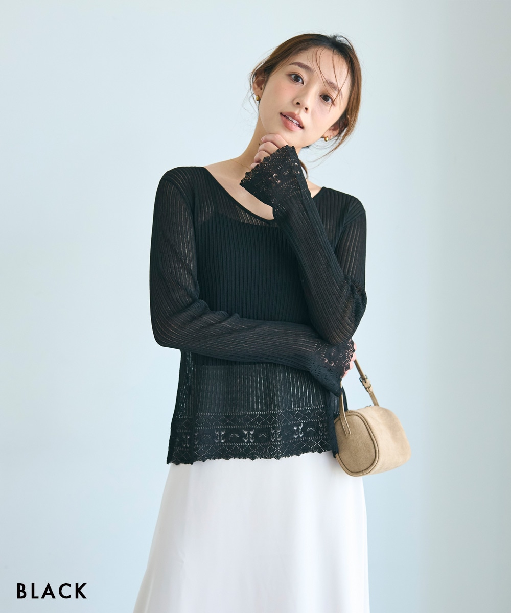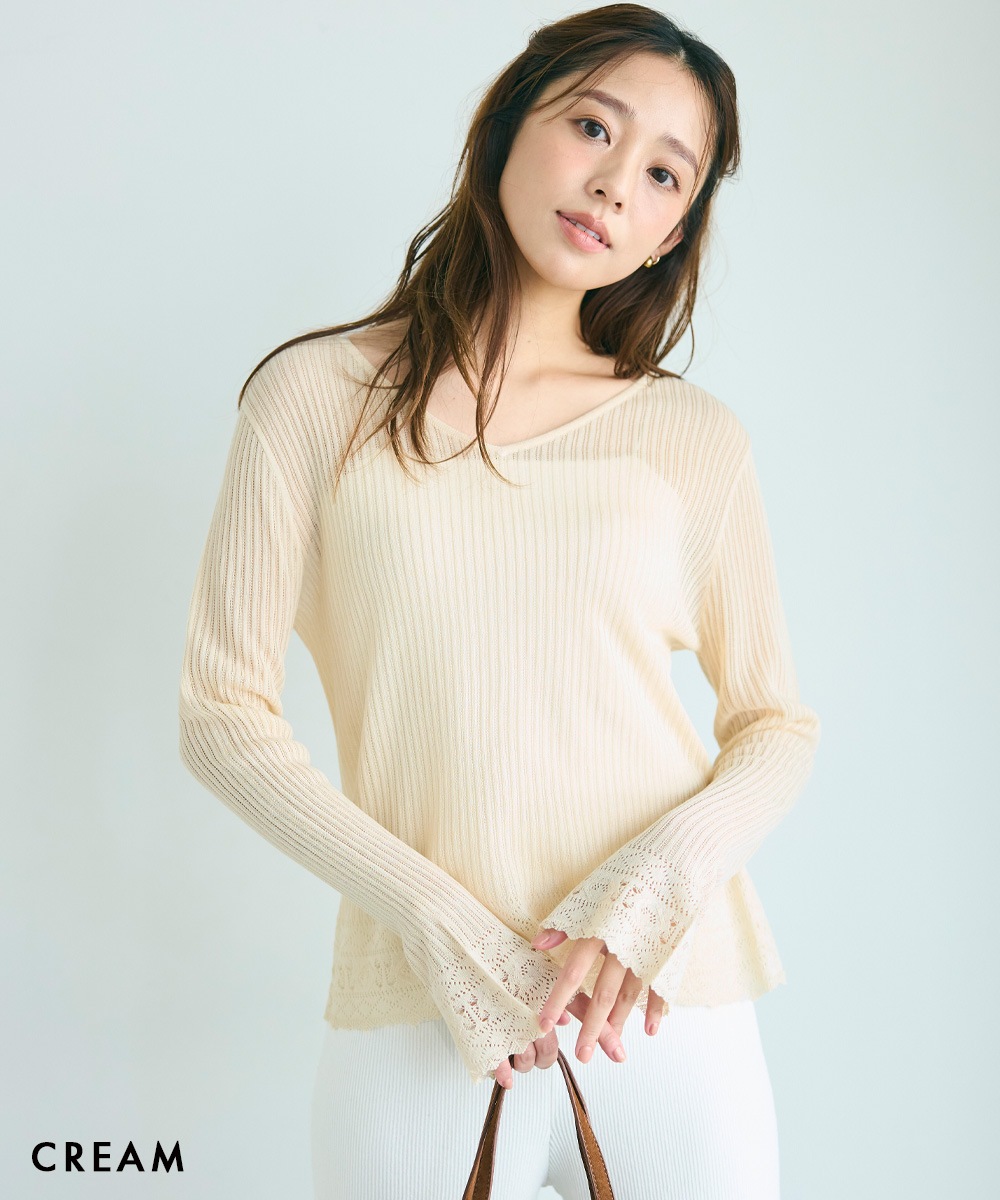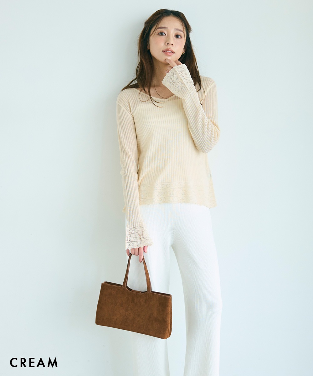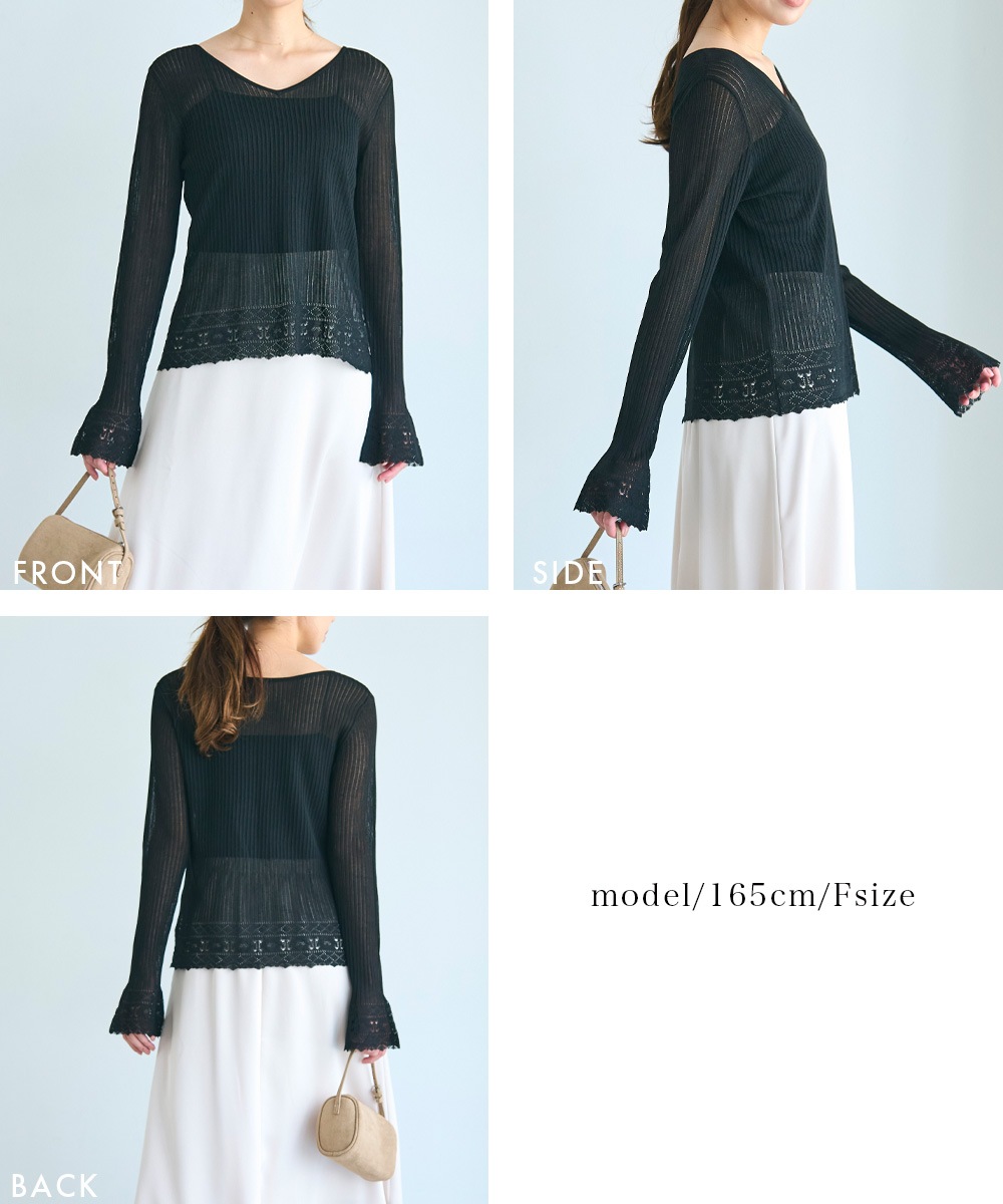 袖フレアクロシェ編みトップス【宅配便】