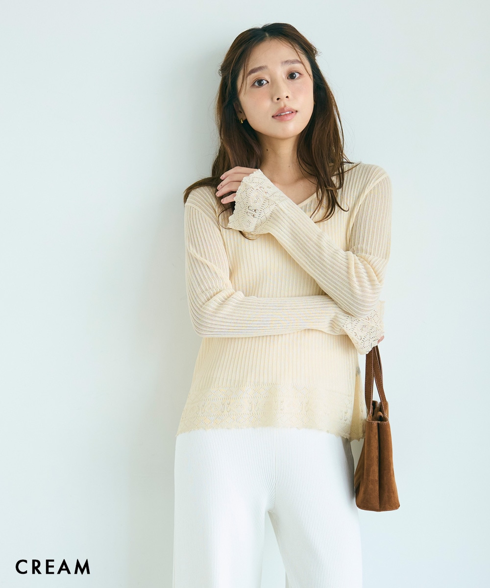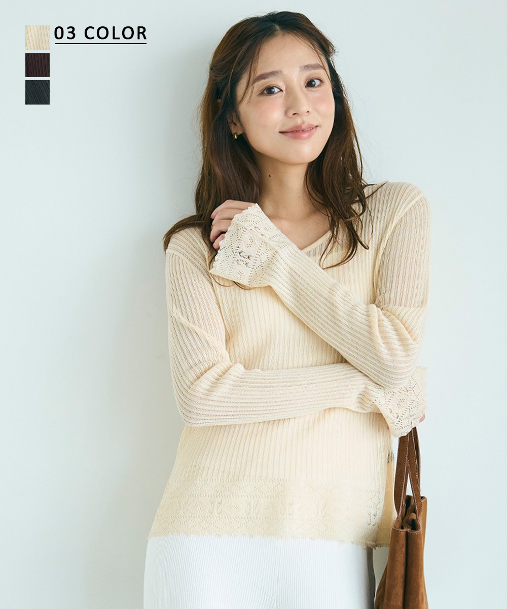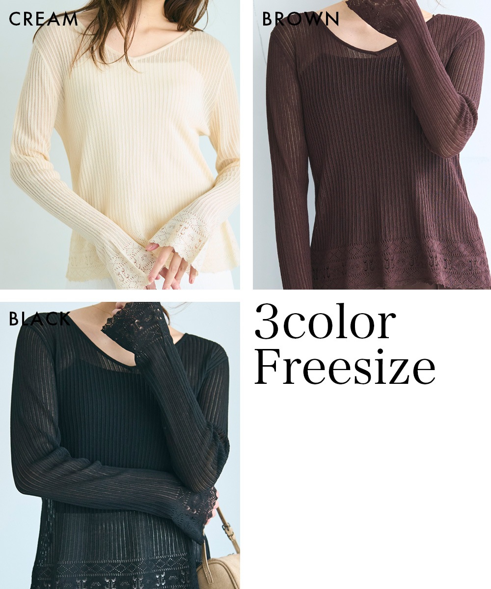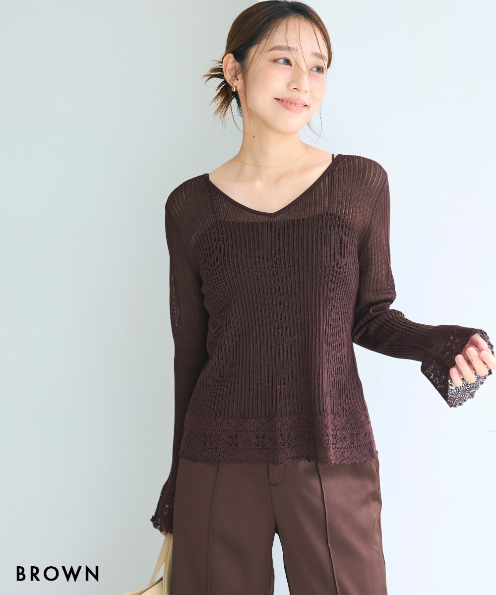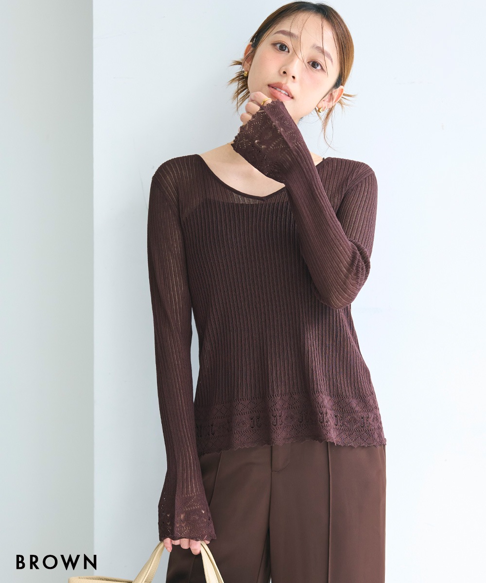 袖フレアクロシェ編みトップス【宅配便】