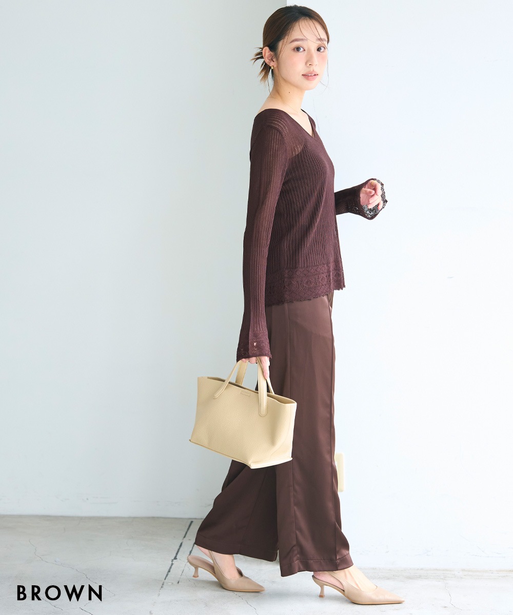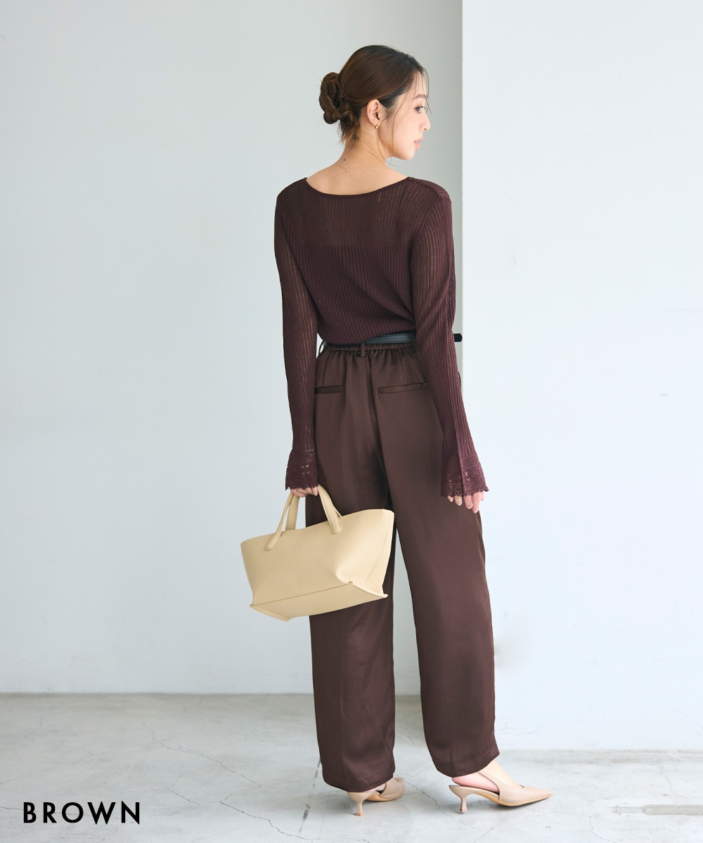| 注意事項 | ※掲載されている商品でシワが気になるものは撮影前に全てプレスをかけております。 その為お送りする商品はたたみジワや細かいシワがついている場合がございます。 ※アイロンをかける場合はアイロンが可能な生地かをご確認の上、各生地毎に適正温度の設定や当て布などを使いご利用ください。 ※生地や素材の性質により半身で2cm前後サイズ誤差が出る場合がございます。 ※生地を織る際の工程において糸の継ぎ目や他繊維の混入、ほつれ、小さな点、編地や柄の誤差が発生する場合がございます。 ※パソコンモニターまたは撮影ライトや自然光での光の影響により、画像によって実際の商品の素材感や色の差を感じることがございます。 ※この商品は生地の特性上、摩擦されると他に色が移ることがあります。淡色のものとコーディネートやバッグ、靴類の色移りにご注意ください。 ※この商品は、非常に柔らかく繊細な生地を使用しています。アクセサリー類など表面の粗い物に引っかかりやすく、強い力がかかると滑脱したり目寄れすることがあります。 ※生産時期が異なる場合やロットの違いによって、多少生地の色や質感の違いがございますのであらかじめご了承ください。 |
