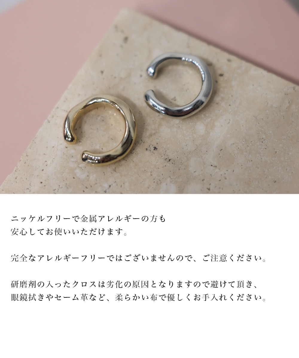 ※完全なアレルギーフリーではございませんので、ご注意ください。 ※研磨剤の入ったクロスは劣化の原因となりますので避けて頂き、眼鏡拭きやセーム革など、柔らかい布で優しくお手入れください。 ※パソコンモニターまたは撮影ライトや自然光での光の影響により、画像によって実際の商品の素材感や色の差を感じることがございます。 ※生産時期が異なる場合、多少の色味や仕様が変わる場合がございますのであらかじめご了承ください。 ※使用後や汚れた際は、柔らかく乾いた布で拭いて下さい。 ※すべての方に金属アレルギー反応が出来ないこと(アレルギーフリー)を保証するものではございません。 皮膚に異常を感じた場合は直ちにご使用を中止し、専門医にご相談ください。 ※メッキ加工を施している商品につきましては、汗や摩擦、化粧品と触れたり、着用したまま入浴することで、剥がれ落ちやすくなります。ご了承の上お買い求め下さい。 |